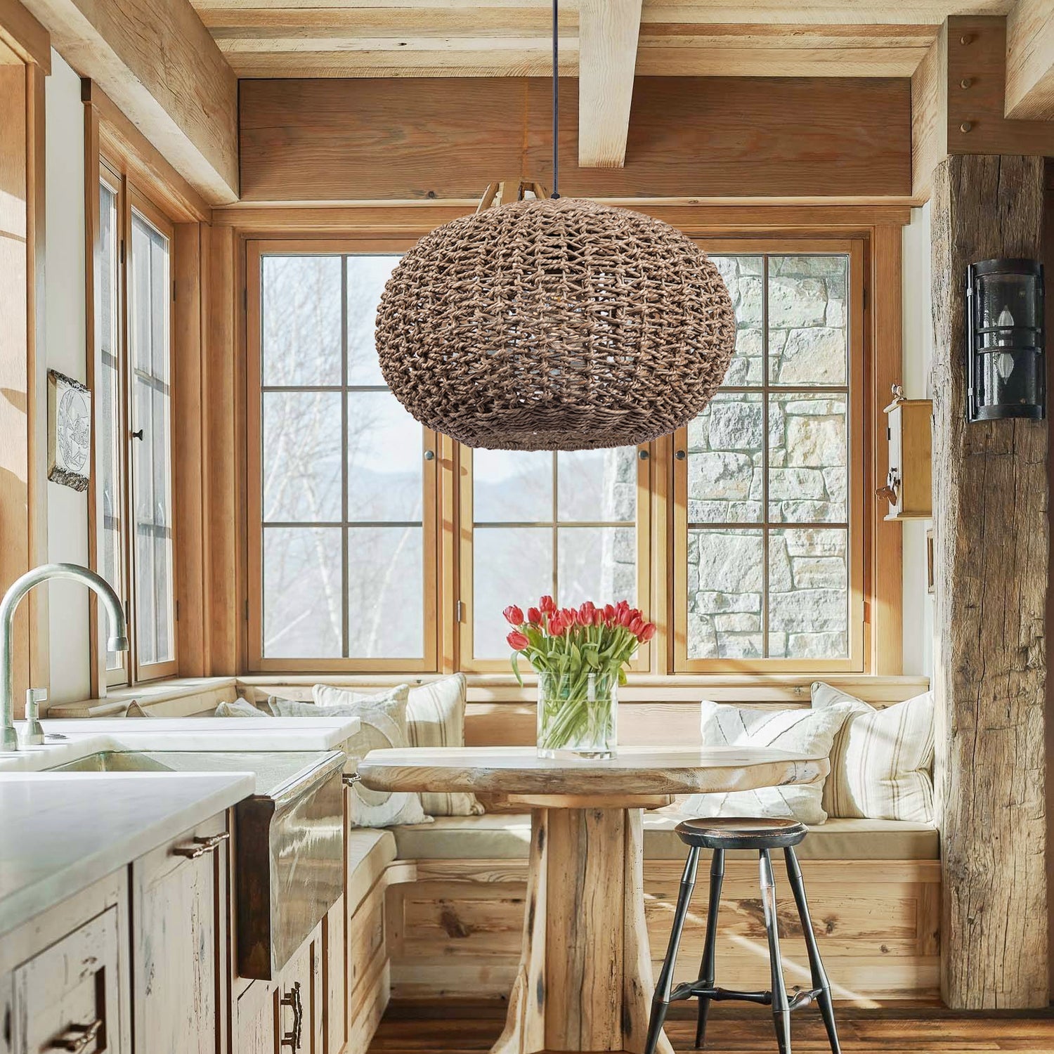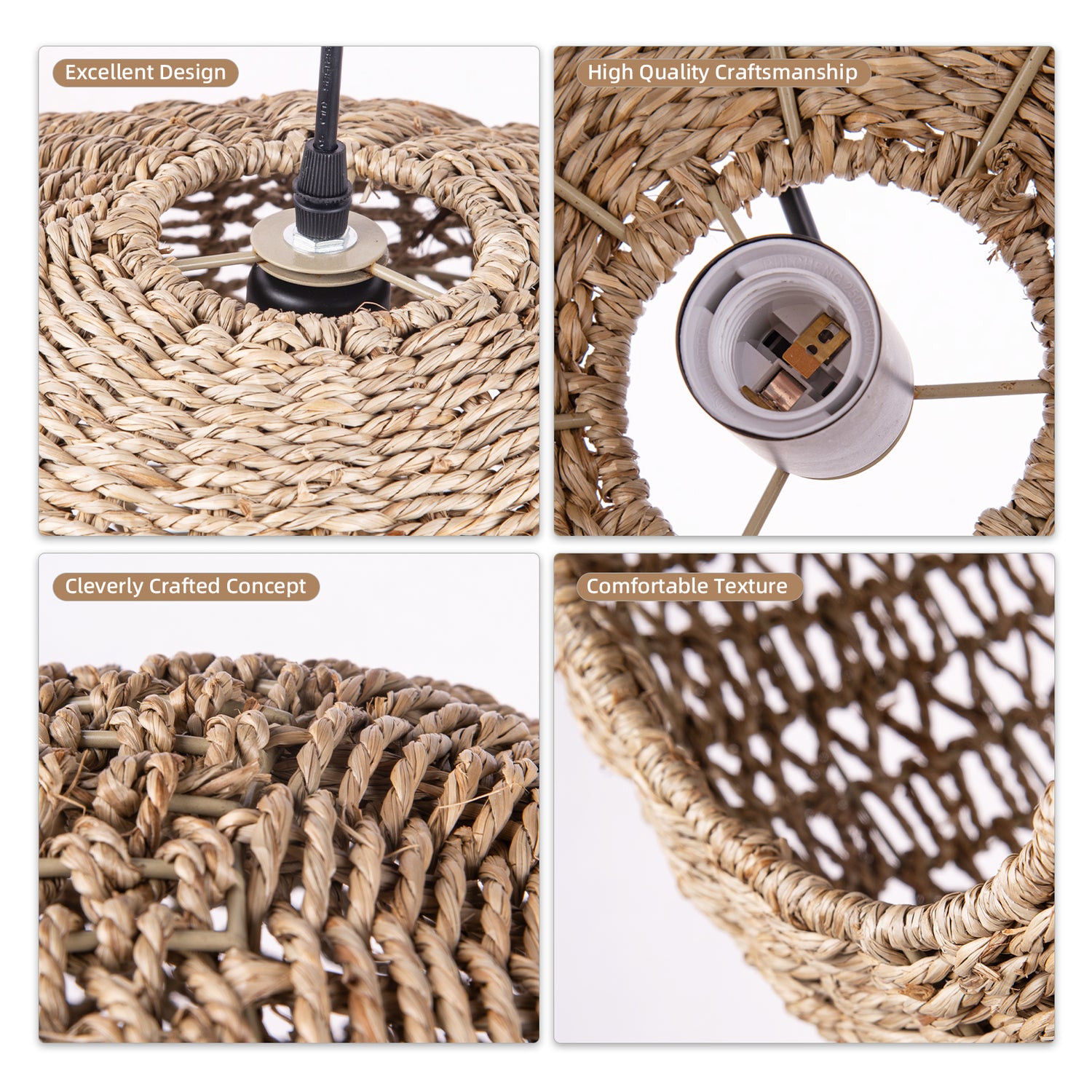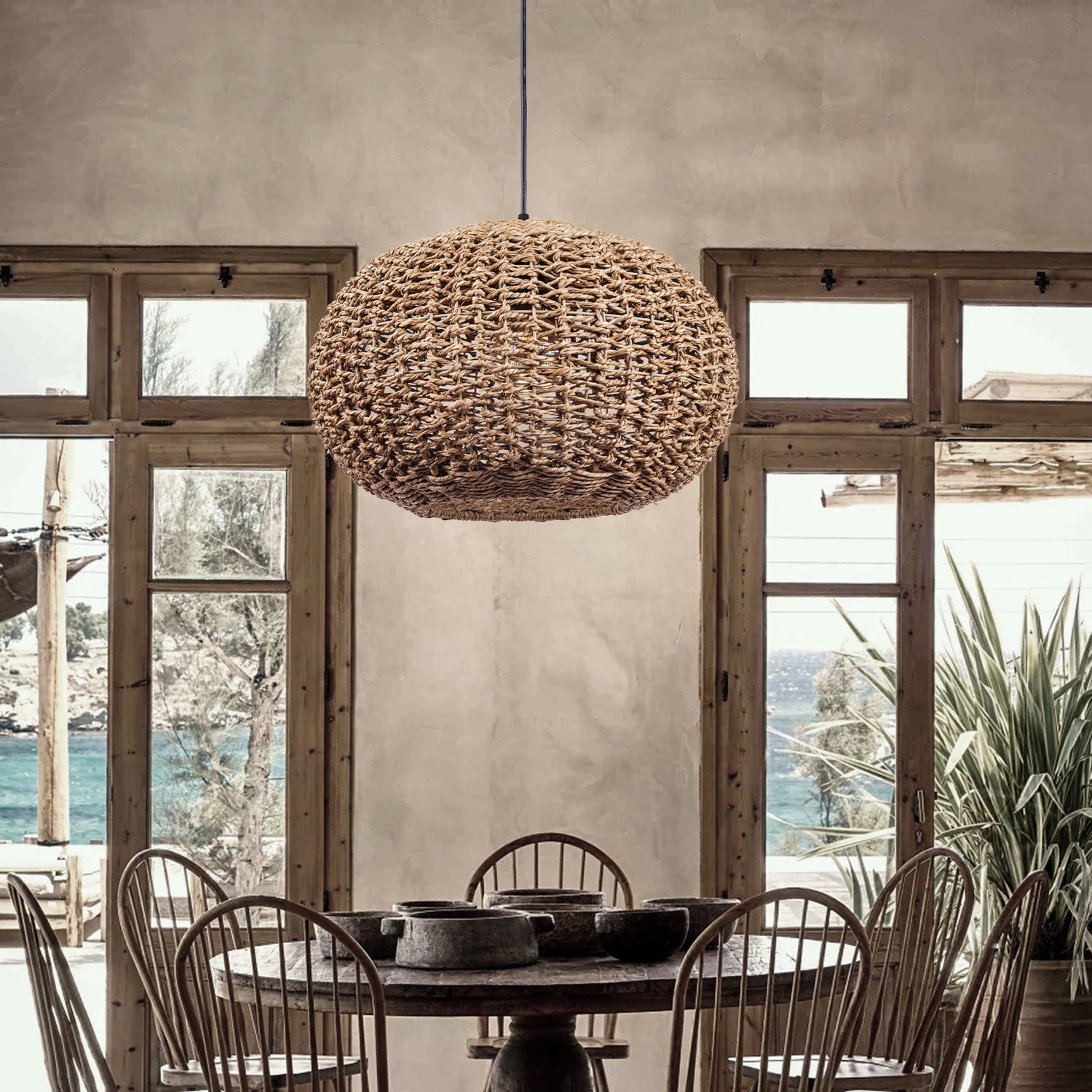 Enhance your space with the captivating charm of our Vintage Straw Pendant Light. Crafted with intricate detail, this exquisite lighting fixture adds a touch of elegance to any room. The natural straw design exudes a classic aesthetic, while the pendant style ensures optimal illumination. Elevate your interior decor with this timeless piece.