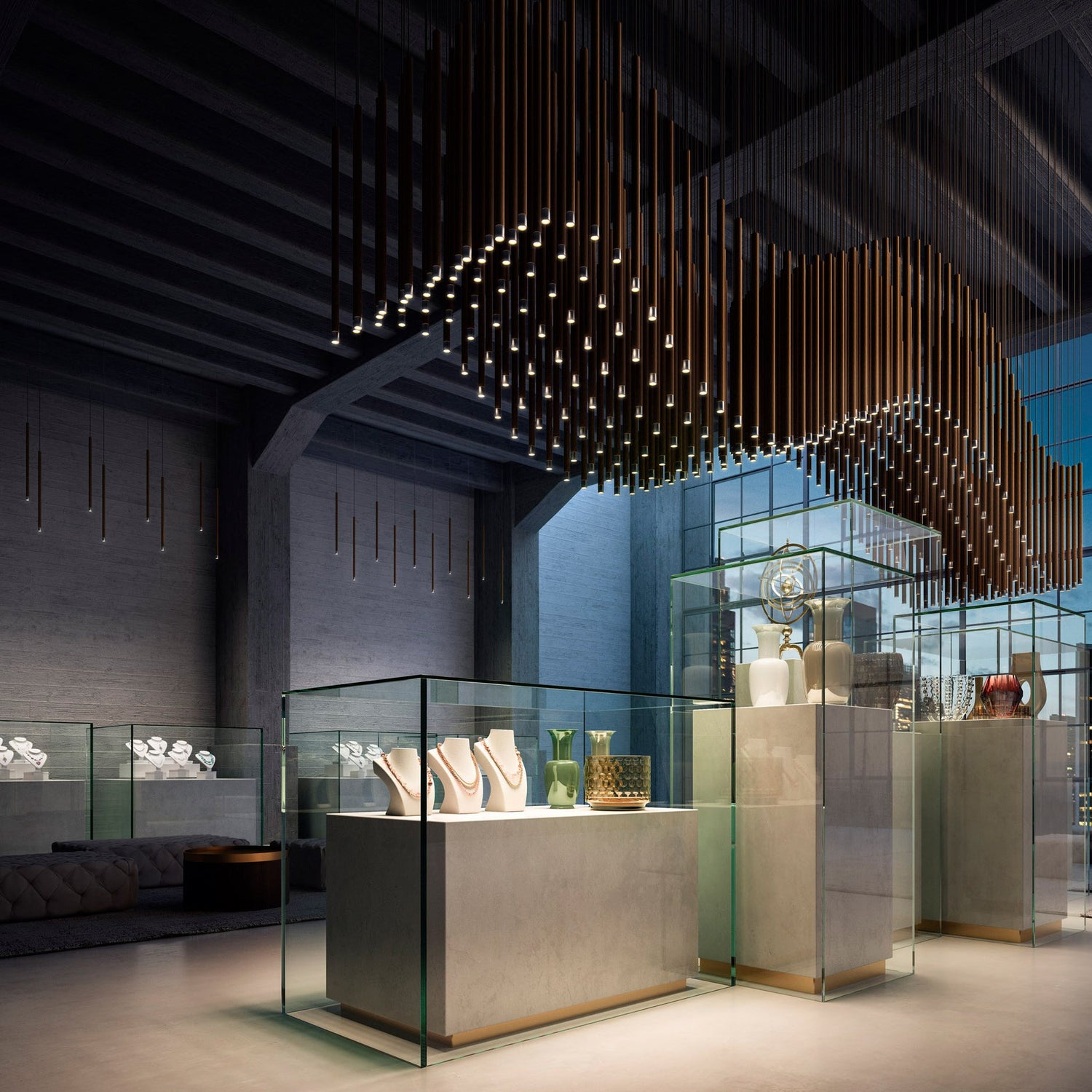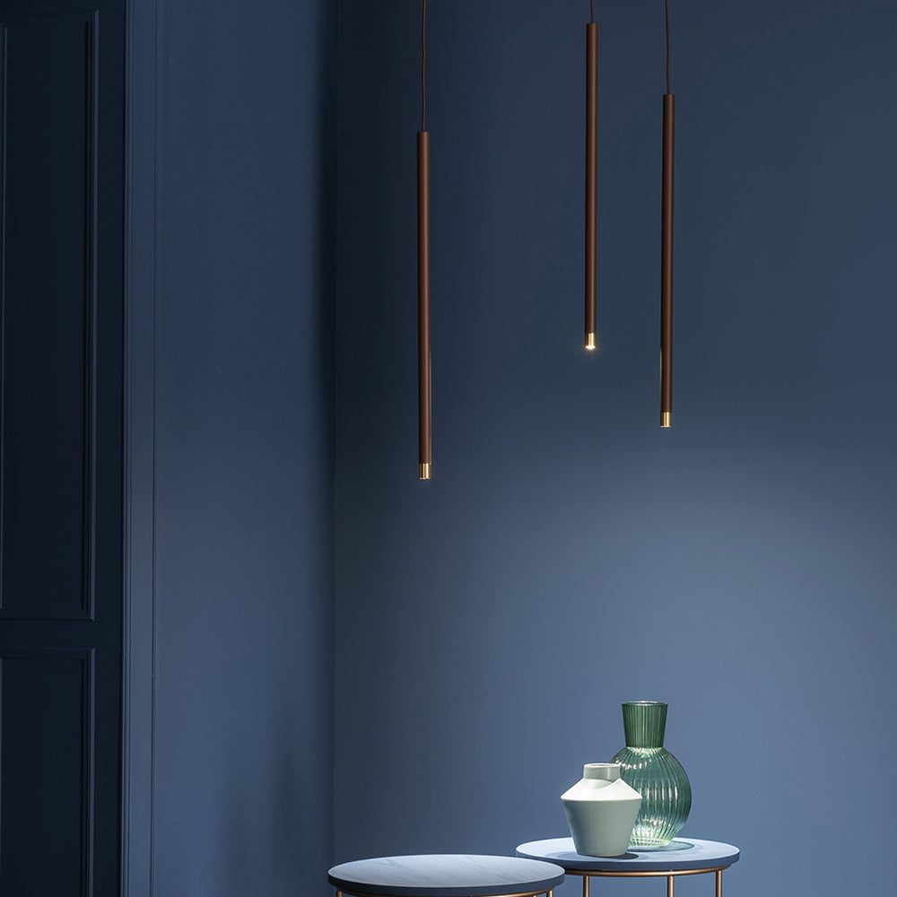 Collection consisting of suspended lamps in Aluminum. Available in several colors. Built-in dimmable LED light source.