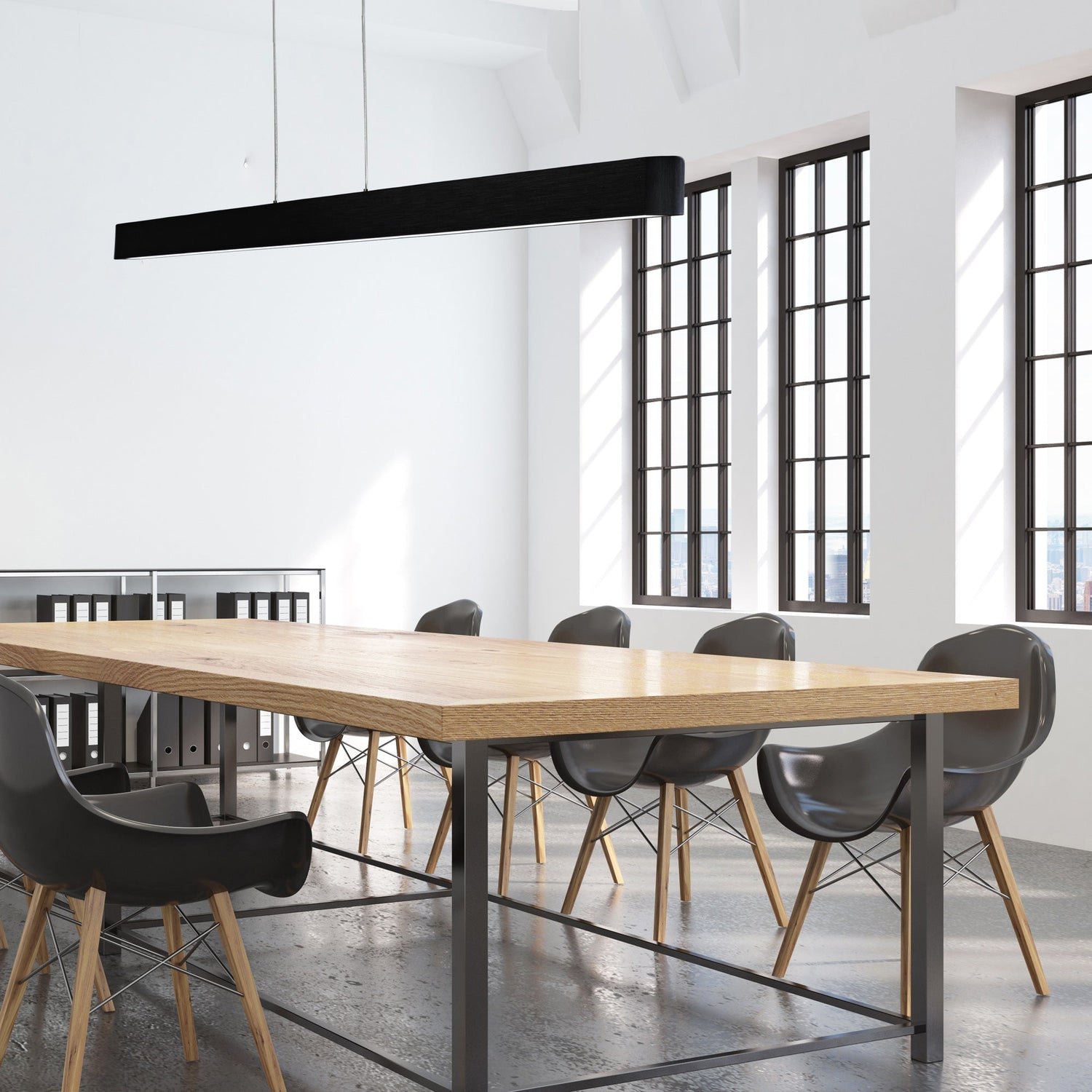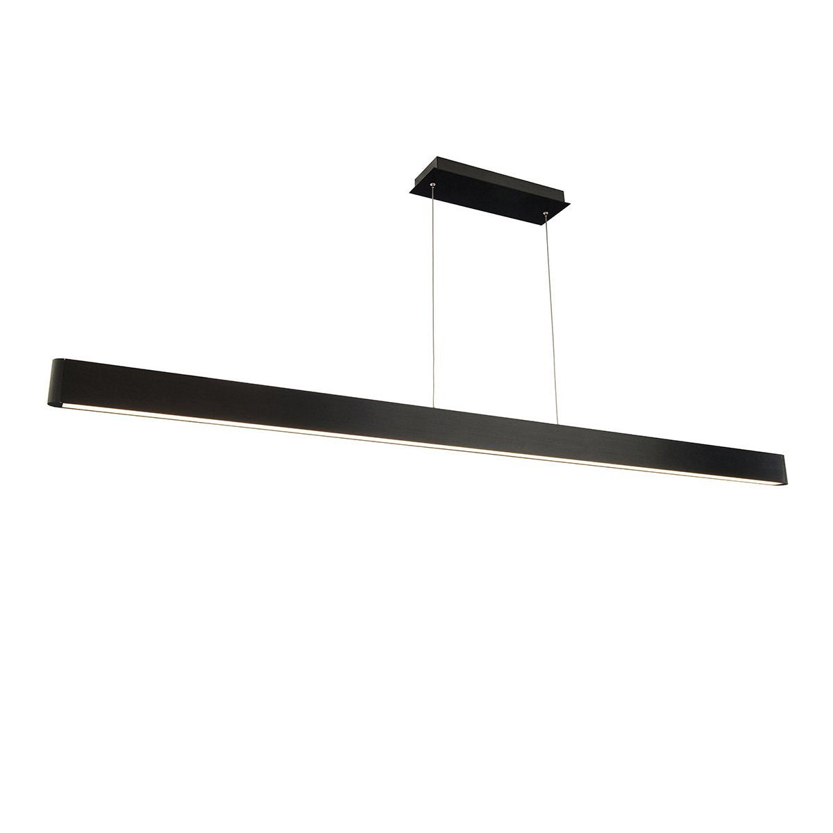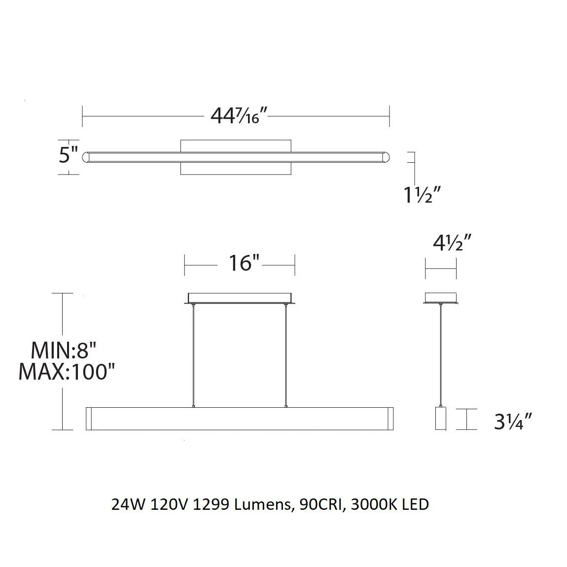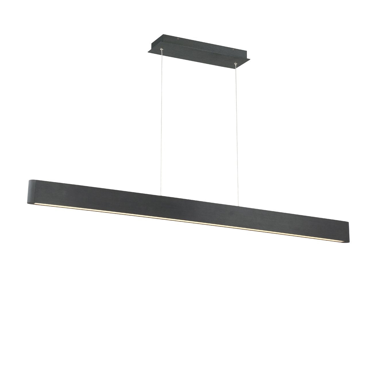 Wishful lighting in a luminous linear chandelier with a handsome brushed metal finish and rounded ends. Ultra thin pendant for the discerning minimalist. Volo is suspended on two thin low profile cables without the need for an additional power cord, lending to a simple and minimalistic design. Adjustable to different lengths through a push-pin locking mechanism at the canopy.
