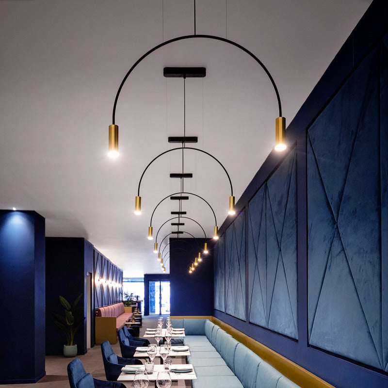 Delicate arches and simple cylinders in a family of lights which can be used singly or in clusters of brilliance. Aluminum heads with acrylic diffusers.