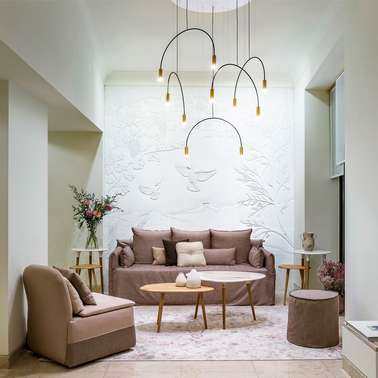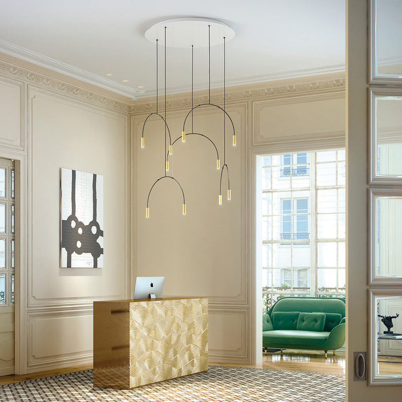 Delicate arches and simple cylinders in a family of lights which can be used singly or in clusters of brilliance. Aluminum heads with acrylic diffusers.