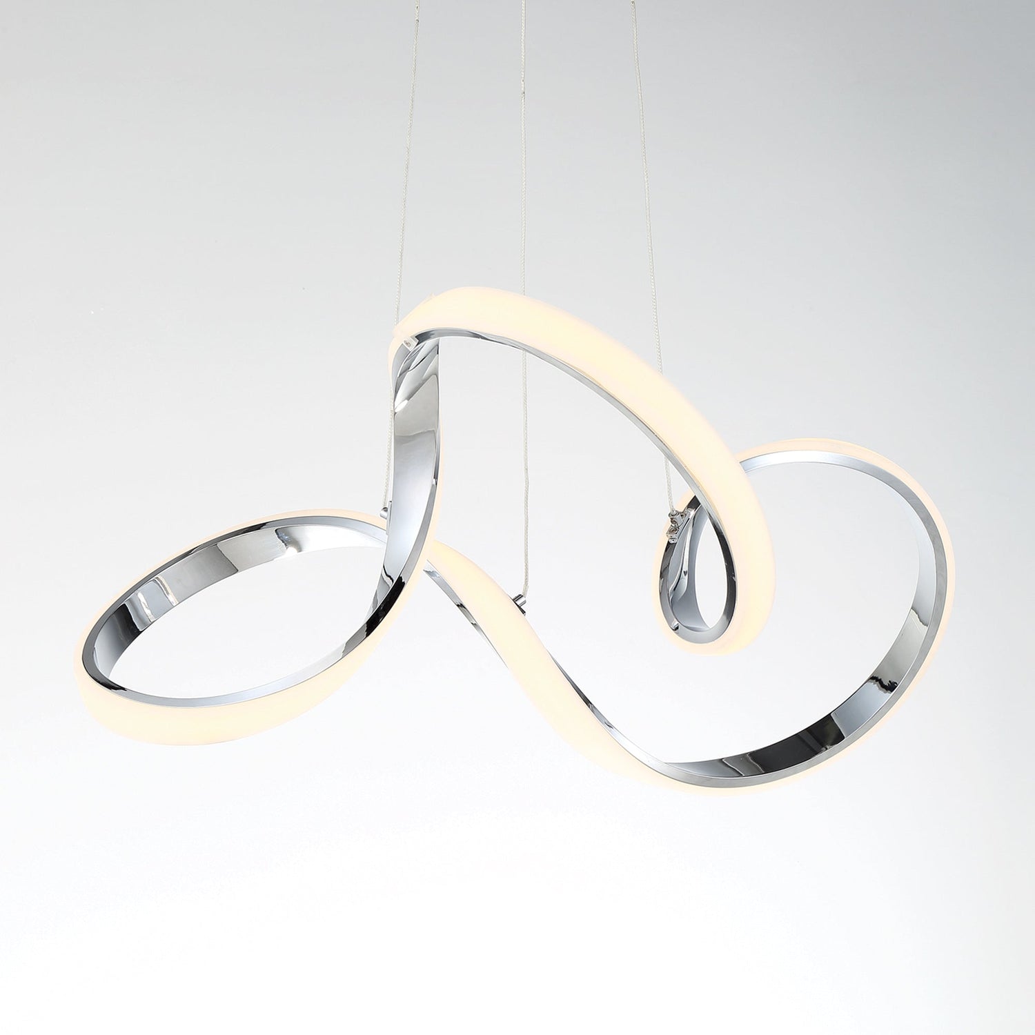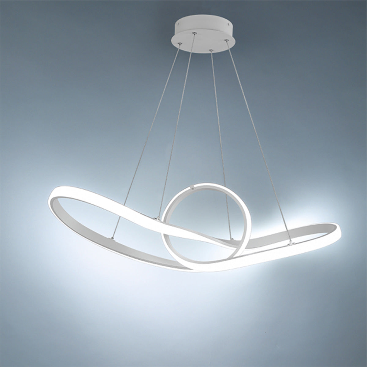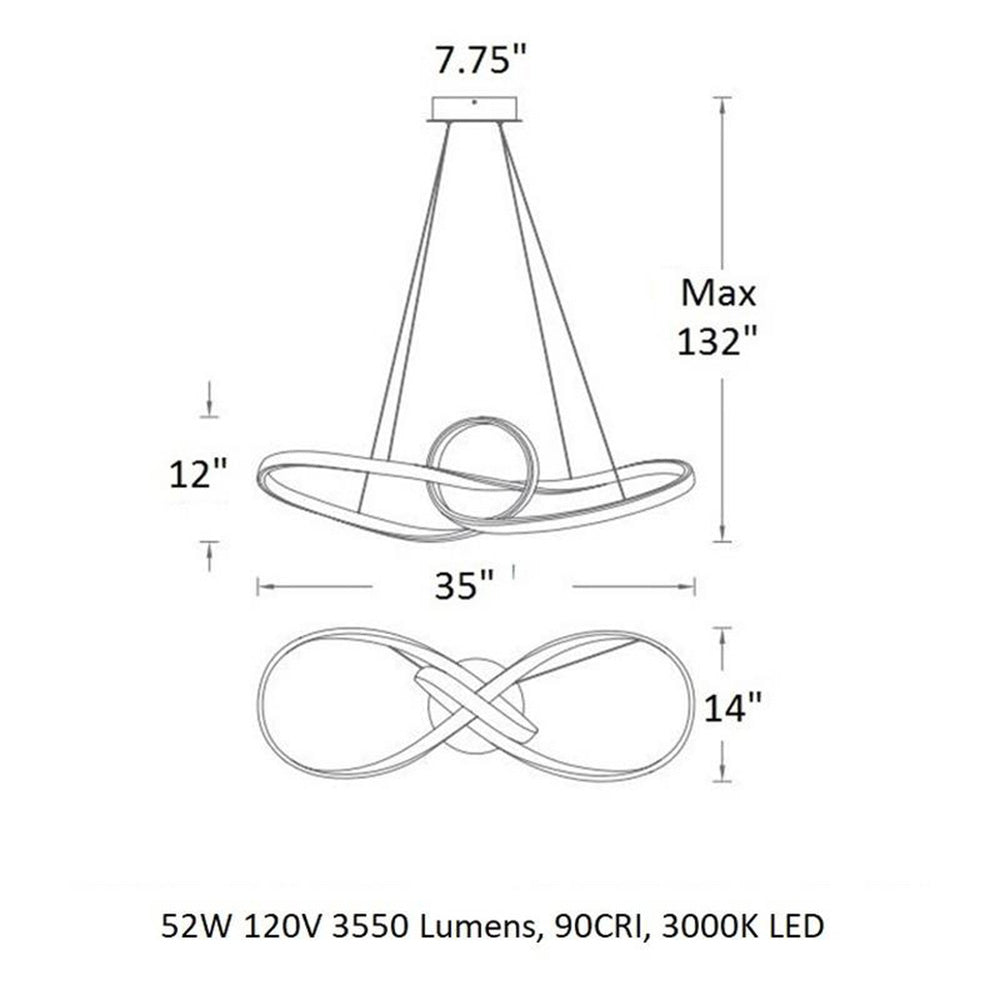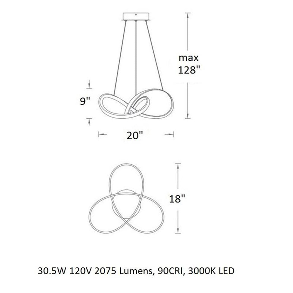 Crafted from afree flowing mobius strip of high powered LED lights, the Vornado LED Chandelier from WAC Lighting is asimple, yet dynamic piece ready to elevate any room in your home. Handcrafted to perfection, the silicon diffuser maximizes brightness and eliminates any LED hot spots. Suspended on four thin, low profile cables without the need for an additional power cord, this pendant is perfect for installing above a living room seating group, dining room table, or above a guest bedroom sleep space. Adjustable to different lengths through a push-pin locking mechanism at the canopy, this dimmable design is ready to imbue your home with abstract contemporary style.