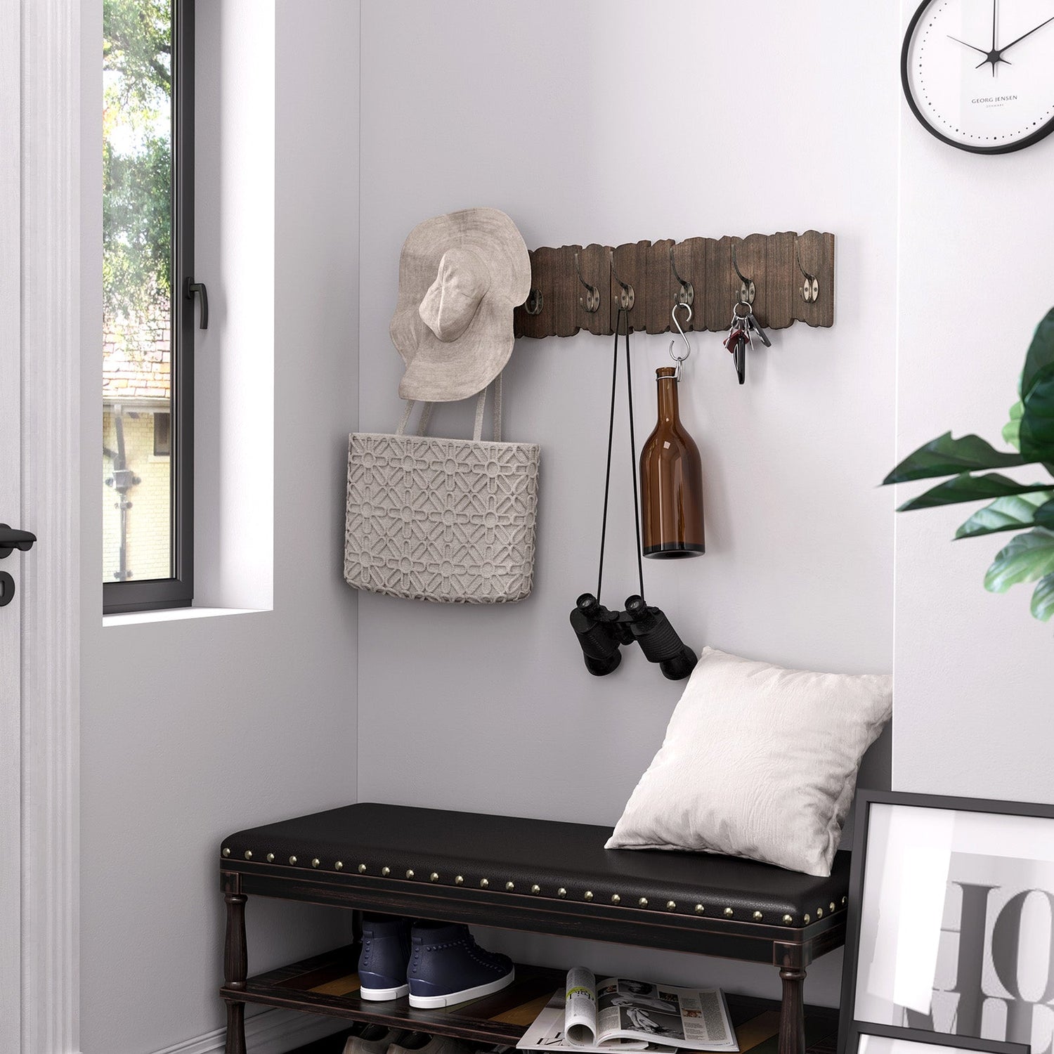 - MAKE A STATEMENT: Invite this statement piece with the striking mix of rustic style wooden shelf and bronze hooks to your entryway, and the unique shape will bring that touch of individuality you’ve been looking for