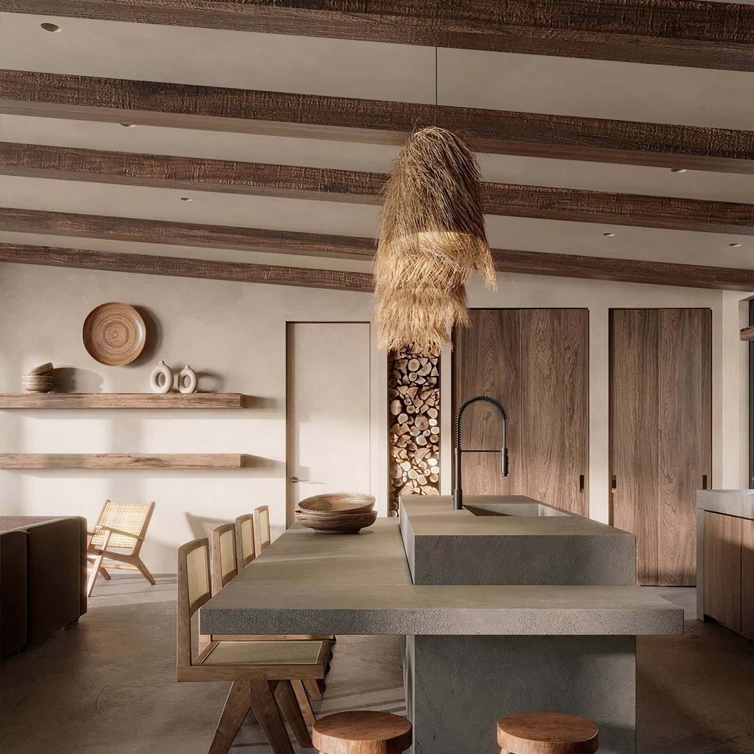 Elegantly crafted with hand knitted wicker material, the Wami pendant offers sophisticated lighting to any living space. Its unique design creates a striking visual effect, adding a touch of luxury to your home. Perfect for an atmosphere of exclusivity.