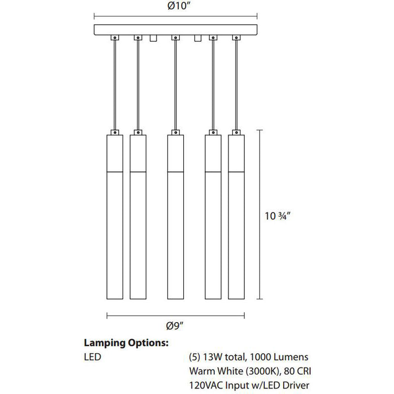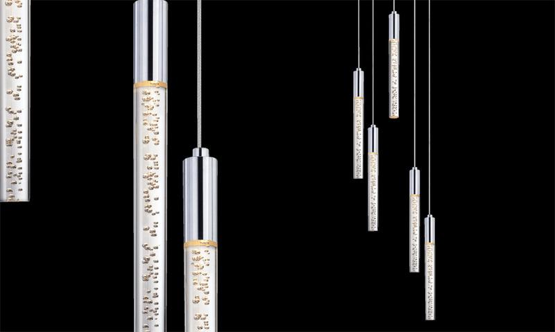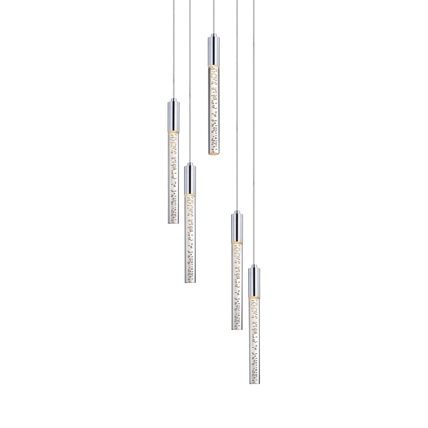 Wands 5-Light LED Round Pendant features light infused within the LED illuminated environment of acrylic shades. This sophisticated form can be featured individually or clustered in multiples to brighten and ornament a space with technological wonder. Finished in polished chrome with champagne acrylic shades.