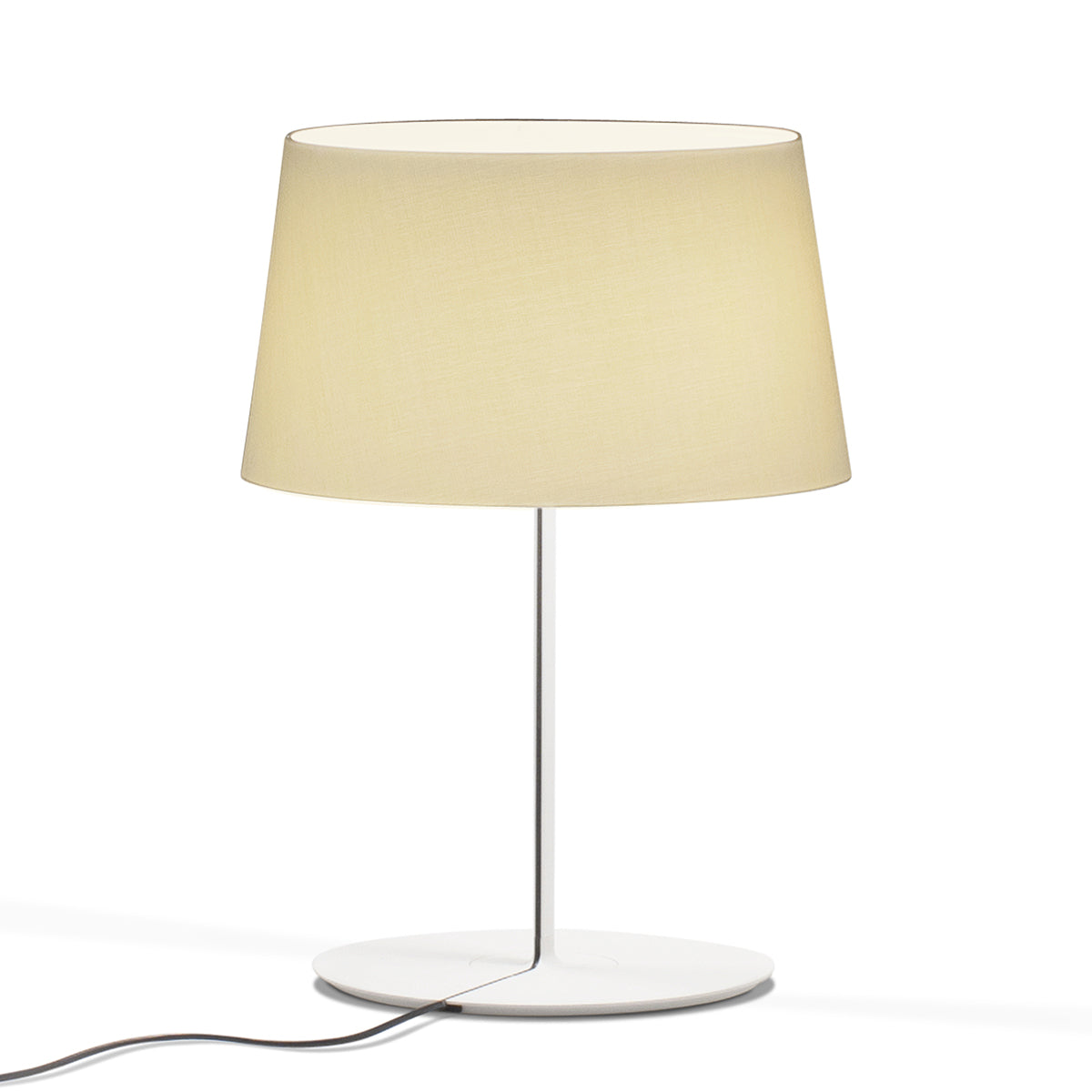 WARM is a table lamp with an off-white screen mesh shade that is appealing, elegant and adaptable to any atmosphere. Designed by Ramos & Bassols, the body is finished in white. Frosted acrylic top diffuser