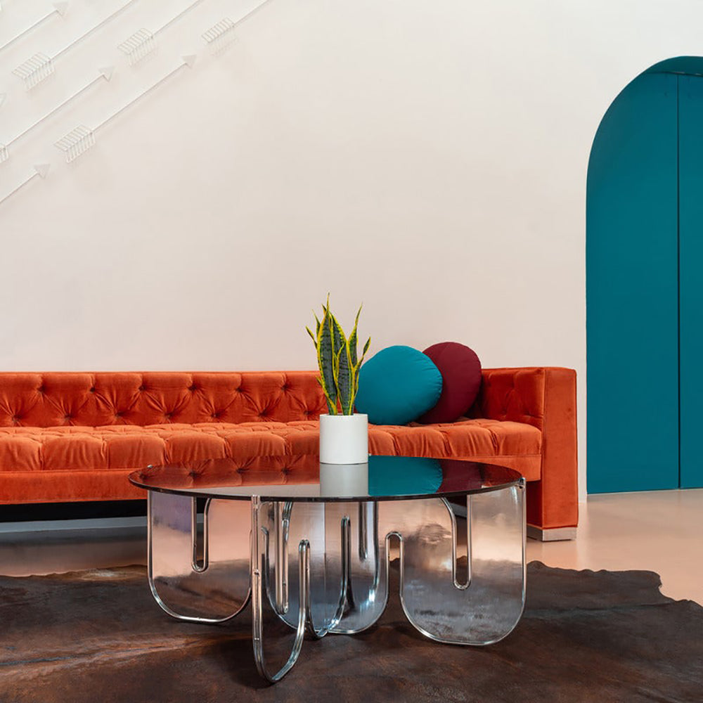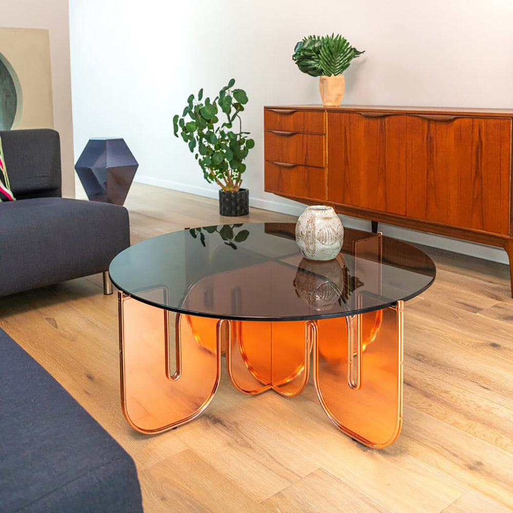 This unique piece, crafted with sheet metal is for all design lovers who want a table as wild and free as the ocean. Add the smoked glass top for an extra unique look, or go with the clear glass for a more chic style.