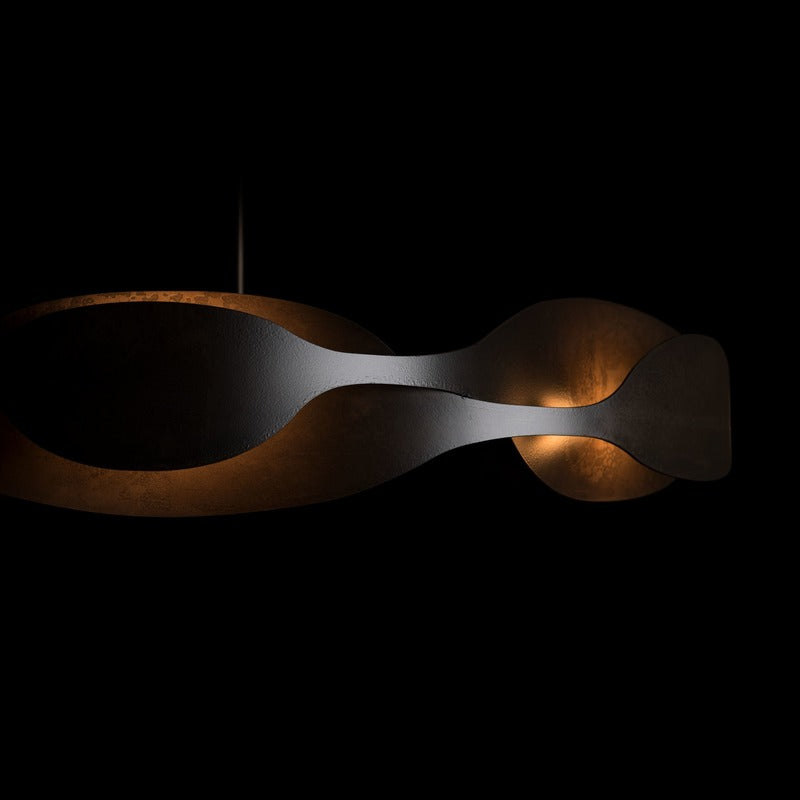 With a sensual interplay of light and shadow, the Waves Pendant suggests a fluidity of motion, an eternal circle of life. Heavily textured steel showcases the skill of the American metal crafters and artisans at the Forge.