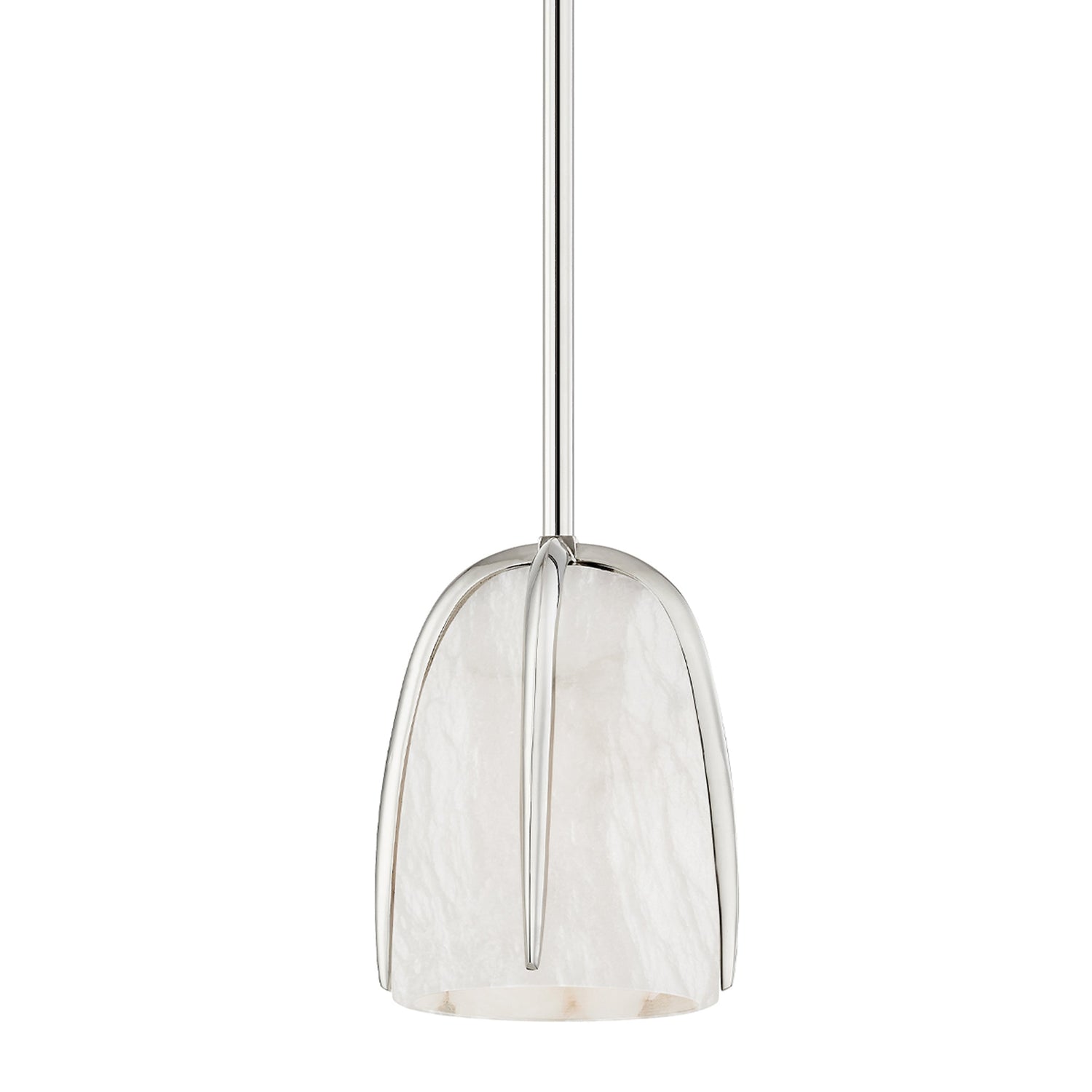 Smooth, curved metal arms cradle Spanish white alabaster shades giving Wheatley a soft, subtleness that works with any design style. Candelabra LEDs illuminate the alabaster and cast light down from the pendant.