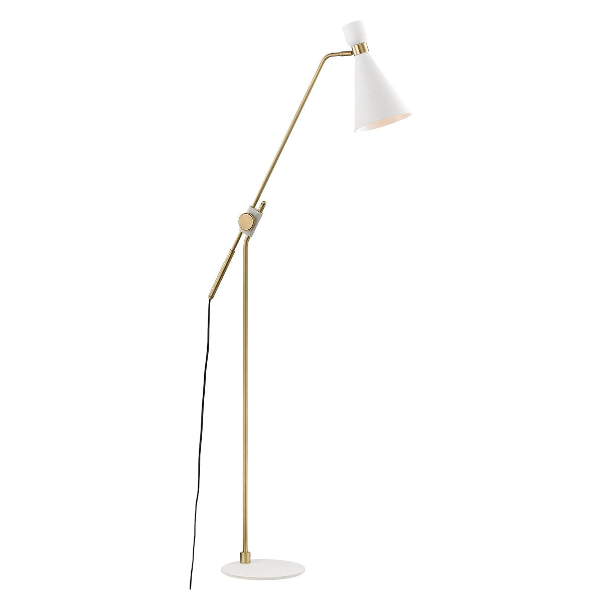 As a floor lamp, Willa is a striking addition to a space. Its oversized knob allows you to move the neck and head up and down, as well as lock it into position. Willa's further adjustable at the base of the contrastingly cuffed shade.