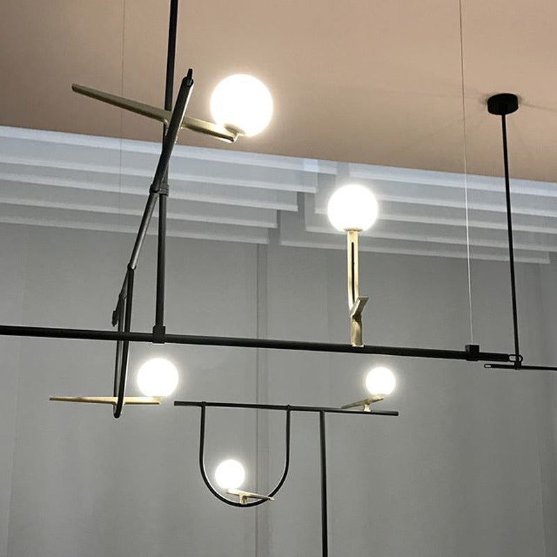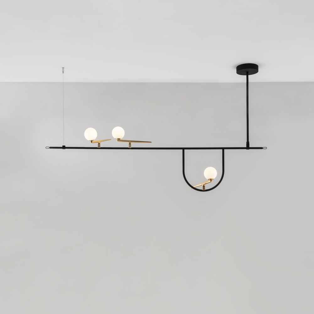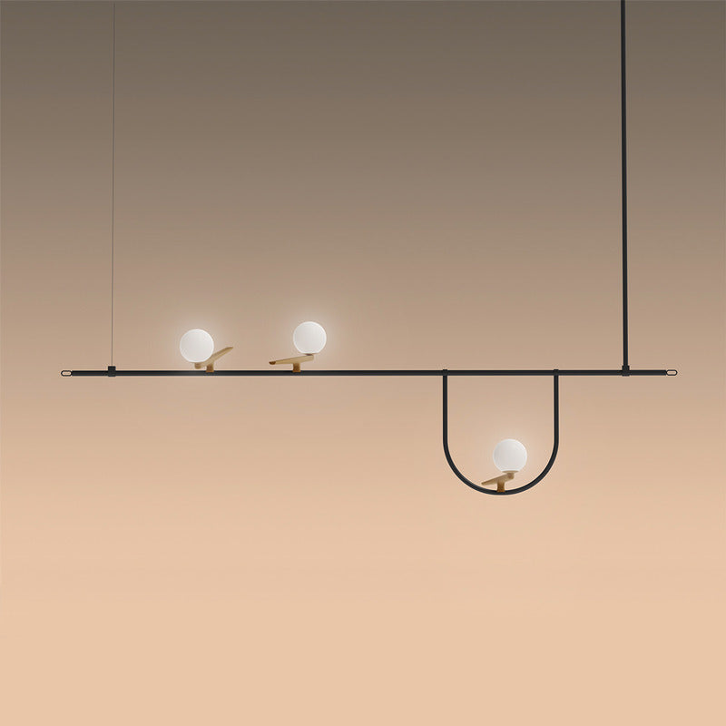 The activity of Neri&Hu is founded on constant research and the desire to work on the dynamic interaction of experience, detail, material, shape, and light, rather than adapt to stereotyped formulas. In a blend of tradition and innovation, Yanzi is a lightweight composition of graphic signs. Balanced structures, such as branches or perches, support multiple stylized figures to provide a variety of versions and qualities of light. They are iconic swallows with a brushed brass body, with their head like a white glass sphere enclosing light, either flying free or contained in glass cages. There is unique sensibility in matching warm and cold, essential yet refined materials. Yanzi is an open system, ideal for creating lightweight compositions and light landscapes that animate any space with an elegant poetic attitude.