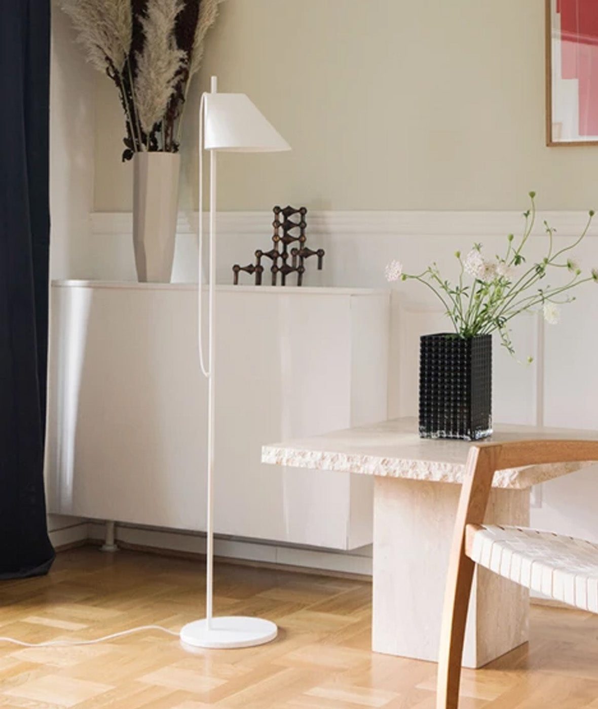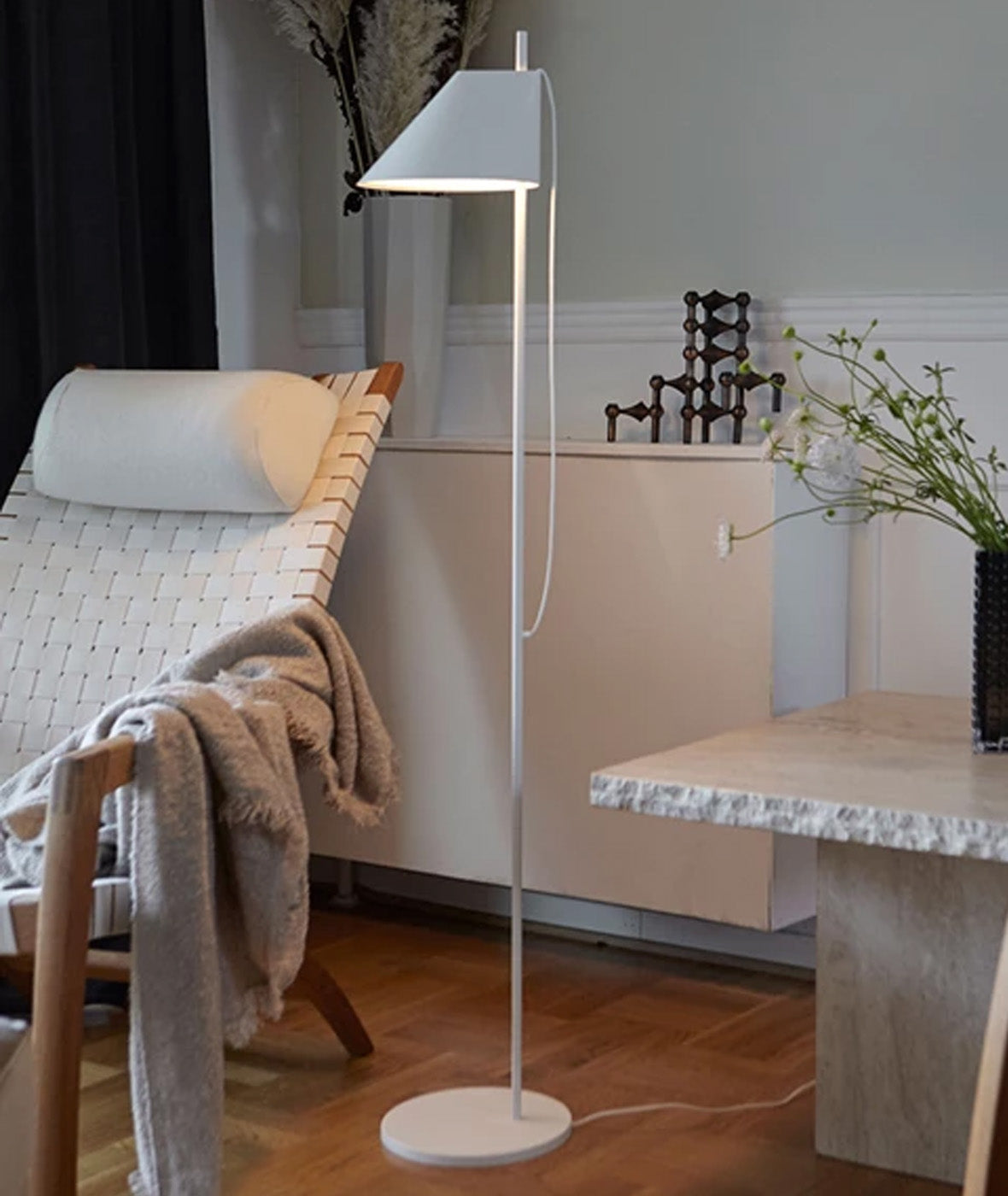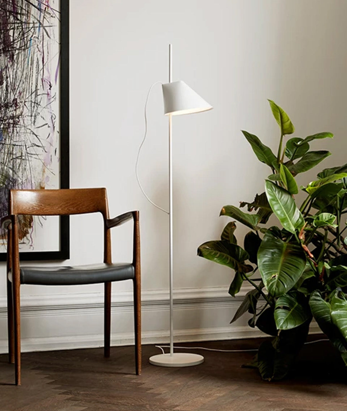 Thisfixture primarily provides glare-free downward directed light. The angle of the shade can be adjusted to optimize light distribution. A slim opening in the top of the shade provides soft ambient upward illumination. A mechanical system provides great freedom of movement so the light can always be set in the ideal position in the workspace living room etc. Built-in LED technology provides a high quality of light with stepless dimming from 100% to 15%. Optional timer capability automatically turns off the light after a chosen duration of 4 or 8 hours. Returns to the last dim level setting when switched on. A button at the top of the tube acts as a switch and dimmer. There is a timer function for automatic switch off that can be set to 4 hours or 8 hours. It is possible to set the lamp to turn on with a specific light level. The angle of the shade can be adjusted to optimize light distribution. The lamp is fitted with an integrated energy-saving LED light source.