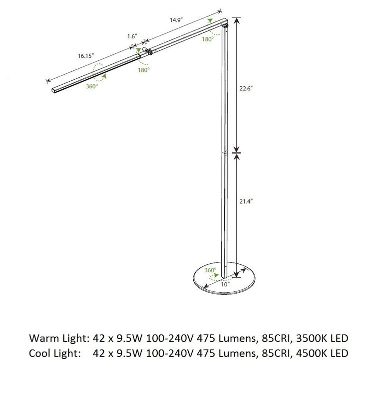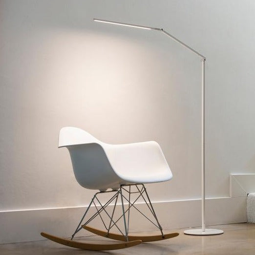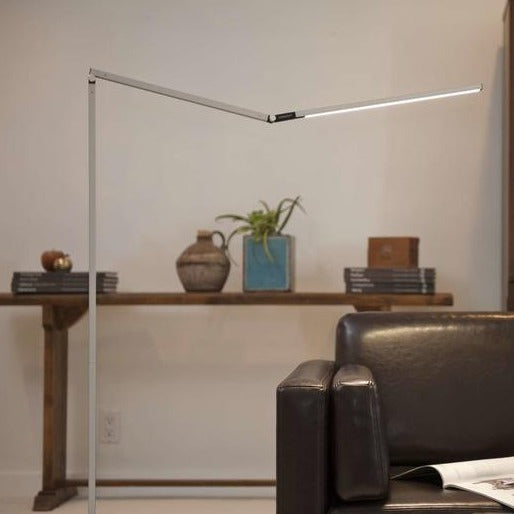 Ideal for reading inyour favorite cozy lounge chair or as a task lamp in your at-home office or work space, the Z-Bar LED Floor Lamp from Koncept brings clean-lined, slim design to your well-appointed home. Adjustable positions and generousproportions provide for a perfect lighting companion, while the powerful LED lighting allows for ample brightness and energy-efficiency.An easy-to-usetouchstrip is located near the LED head, simply slide your finger along the strip to dim gradually, or touch anywhere on the strip to jump directly to any brightness. An award-winning design, this table lamp is sure to bring a welcomed touch of brightness to any space in your home.