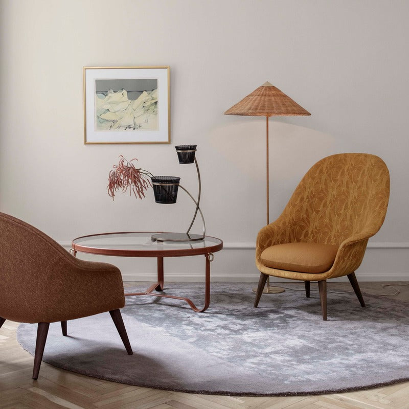 Originallydesigned by Paavo Tynell in 1935 for the Hotel Aulanko the 9602 Floor Lamp from Gubi offers a certain rustic beauty characterized by its elegant and airy lampshade and rattan-covered stem. Showcasing the designer's limitless imagination and unparalleled ability to create designs of enduring beauty, this floor lamp adds a playful, exuberant quality toany corner of your home. Ideal for farmhouse, tropical, and even Scandinavian-inspired spaces, this floor lampis perfectly suited for creating a gentle ambient lightto add warmth and character to a casual seating group or for accenting empty space in need of some decoration in a dining room or master suite.