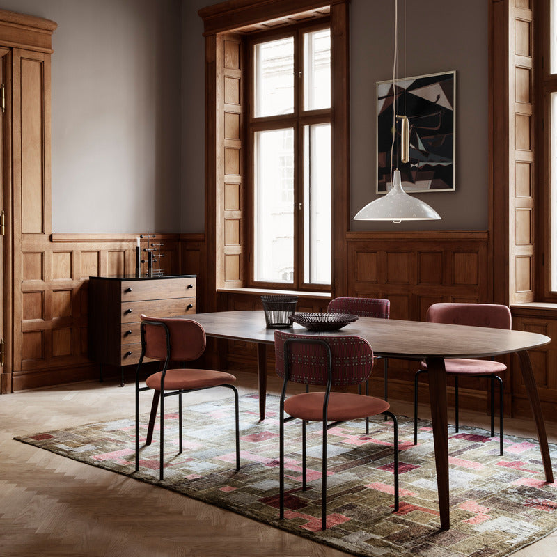 Unveiled in 1948 at the Finland House in New York, the A1965 Pendant was an instant success for Paavo Tynell and one of the lighting fixtures considered to define his mid-century peak. It delicately holds some of his most distinctive design traits; the perforated and polished brass material combined with a unique lift mechanism, raising and lowering the lamp to different heights. The A1965 pendant gracefully diffuse the light downwards through frosted glass, omitting glare whilst gently illuminating the room. The hanging counterweighted A1965 Pendant was Tynell's attempt to add lighting mobility to the ceiling fixture and combing the advantages of the portable and the installed lamp. The impeccable construction of the A1965 Pendant fully reveals Paavo Tynell's knack for elevating ordinary light fixtures into functional art and this remarkable style played a significant role in shaping the aesthetic of mid-century lighting.