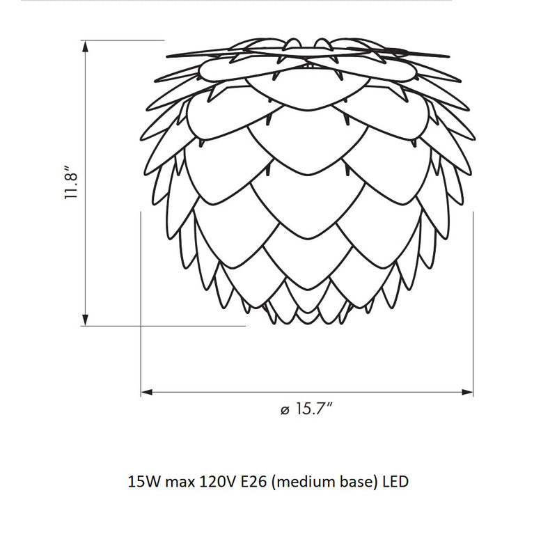 Modern. Elegant. Striking. The Aluvia is an artistic assemblage of 60 precision-cut aluminum leaves, overlapping each other on a durable polycarbonate frame. These metal leaves surround the light source, emitting glare-free, ambient light. The underside of each leaf is painted white for increased light reflection, and the exterior is finished in various colors. Position it in a corner, or use as a statement piece anywhere; the Aluvia makes an artistic impact in any room.