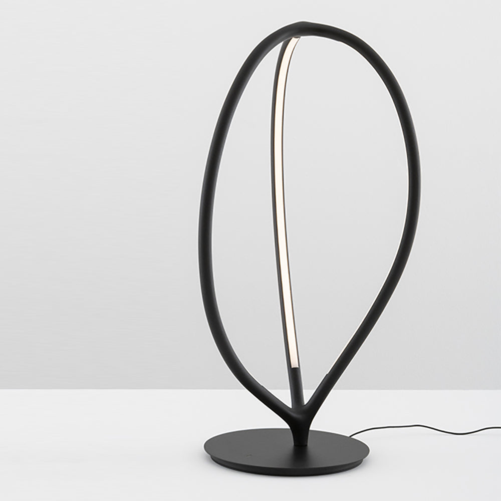 Arrival is a complete lamp family with dynamic, flowing shapes that sculpt light with delicate, graphic lines. Branching out from a central base, each model has three arms that form a soft, organic geometric shape through a profile that is both light and structured.