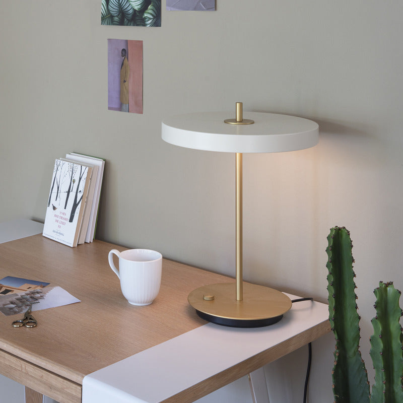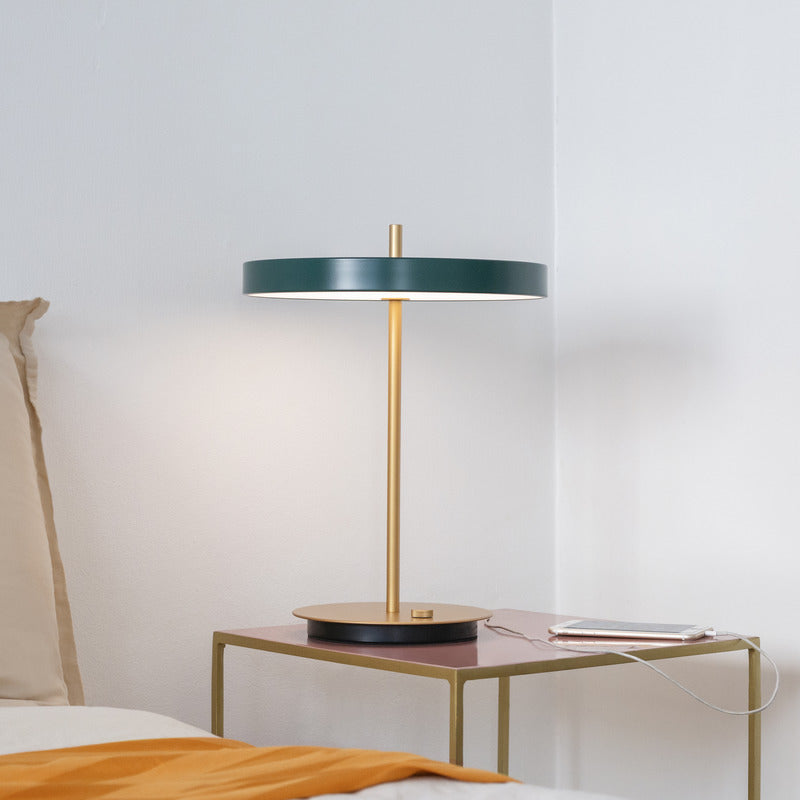 A multifunctional lighting design perfect for any room in your home, the Asteria Table Lamp from Umage is ready to outfit your home with classic Scandinavian style.Equippe with a built-in LED panel complete with a diffuser ensuring a soft illuminationthroughout your room, the brass stem acts as a vertical axis, reinforcing a tight and sleek expression.Perfect as a bedside lamp or flanking either side of a living room sofa, the Asteria Lamp features ahidden USB-port, so you can charge your phone when needed ¨C even when the light is turned off.Ready to add simple, structured elegance to your home, station this lamp in your bedroom, office, or living room for a convenient source of light and energy.