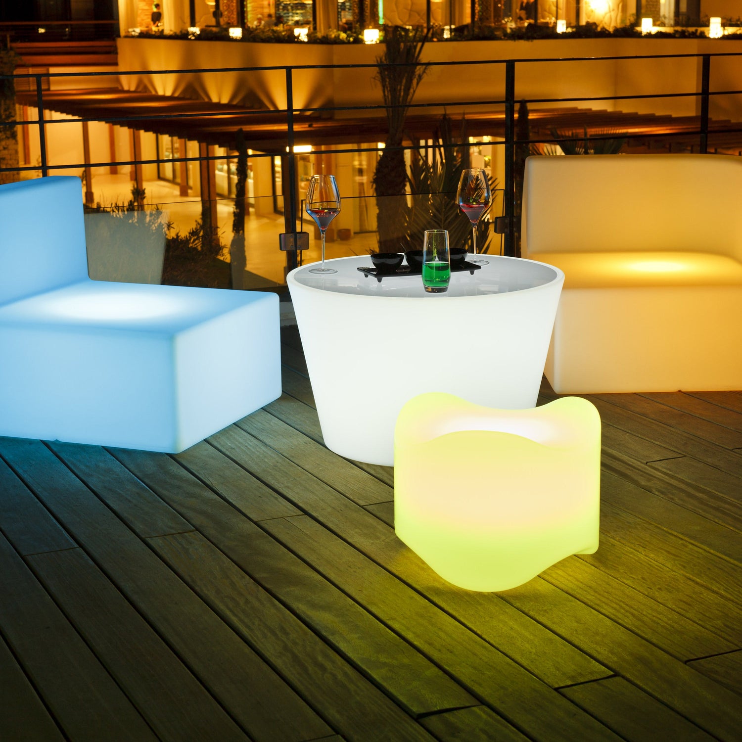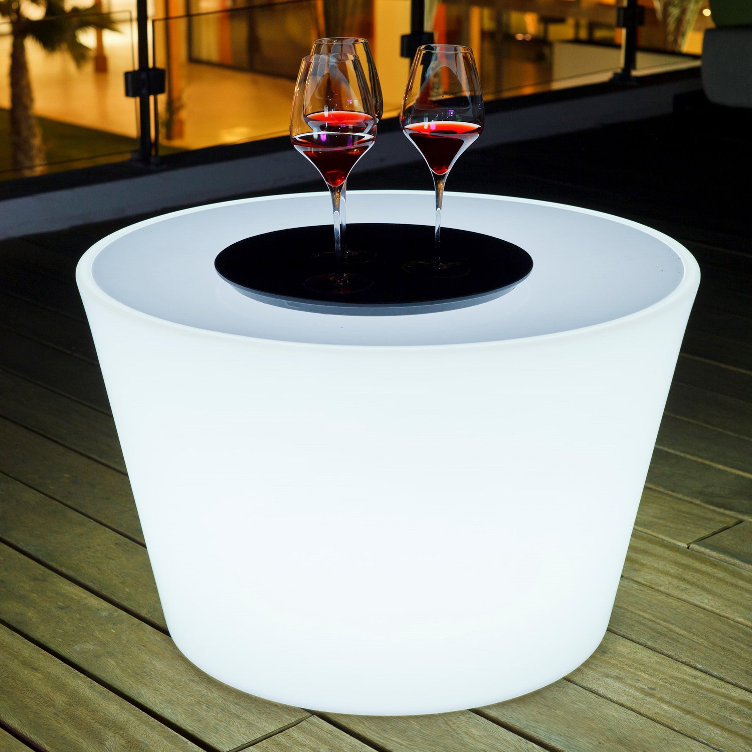 Bring an unexpected and illuminated touch to your next outdoor happy hour or dinner event with the Bass Illuminated Bluetooth LED Outdoor Coffee Table from Smart and Green. Ideal for bringing a touch of ambient light to your outdoor dining and conversation areas, this lamp/table is crafted from polyethylene and wet rated for indoor and outdoor use. Equipped with wireless Bluetooth and SmartMesh technology, the brightness and color of the light of the coffee table can be controlled from your smart phone or tablet with ease.