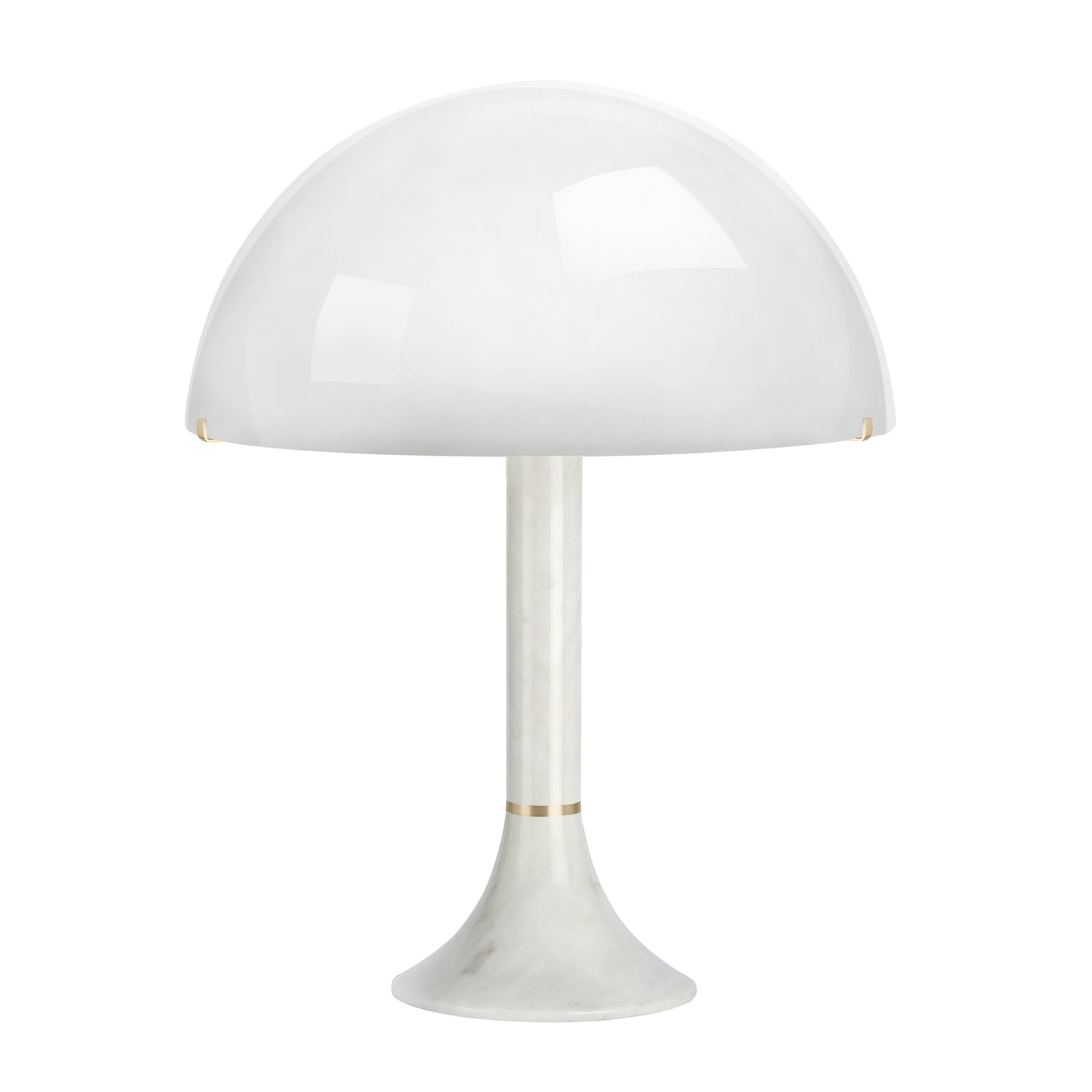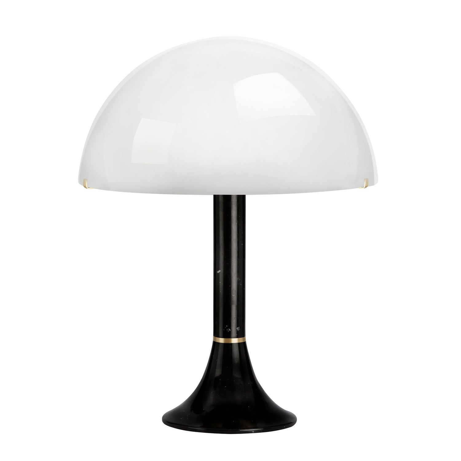 A table light that truly represents a decade, honoring a time which we return to for a notion of optimism and dynamism. The distinct opal glass dome references the fun and 'pop' side of the 70's and the gold brass ring placed at the neck of the column crowns the piece with the CTO Lighting signature detailing.
