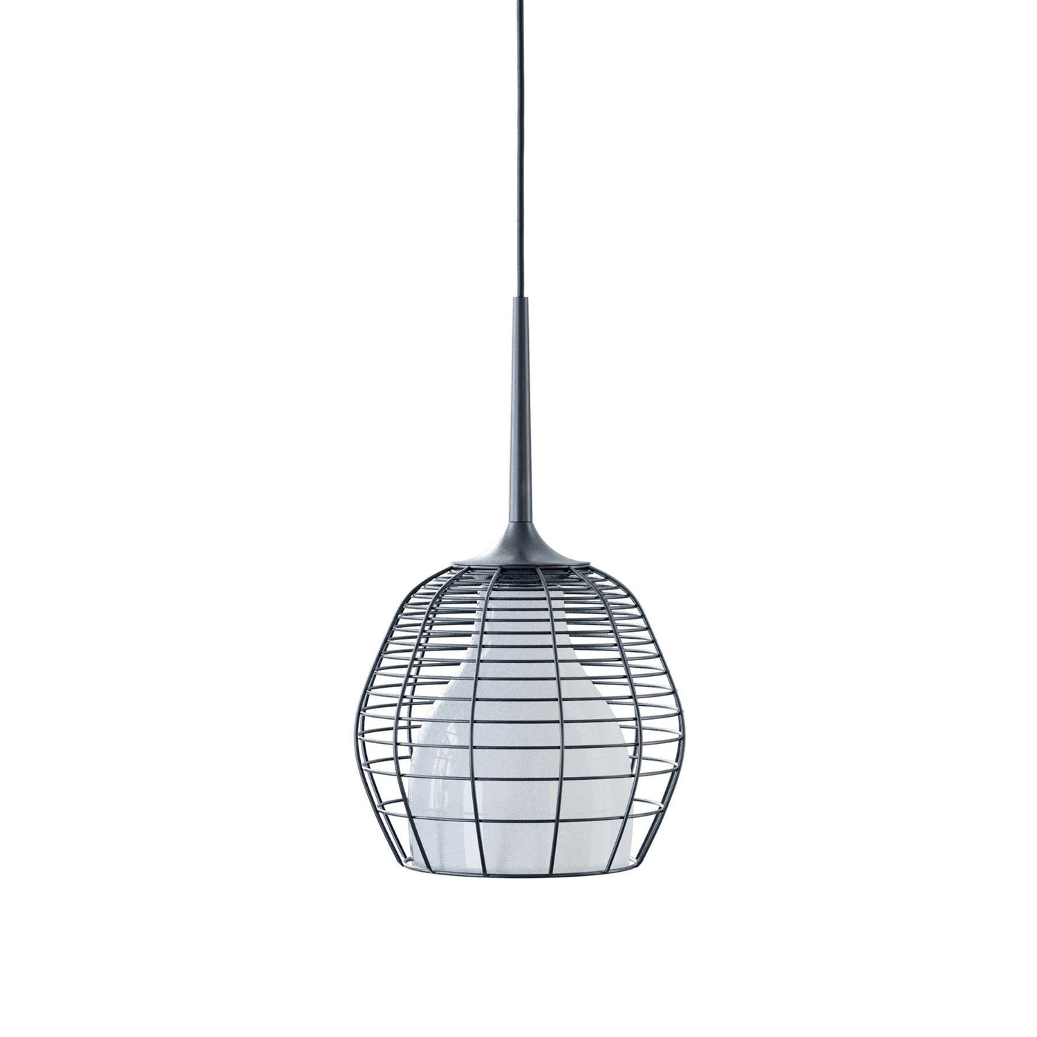 Taking inspiration from the lamps used by miners and workers underground, the Cage Pendant Light from Diesel Lighting is characterized by the metal cage surrounding the pendant, acting as a decorative element. Showcasing contrast between the delicacy of the blown glass shade and glossy diffuser and the hardness of the steel outer cage, this pendant offers a structural, yet elegant touch to your living or dining areas. Ideal for flanking a master bed or paired along with a kitchen island countertop, this pendant can be clustered in multiples to create a unique lighting fixture design that is all your own.