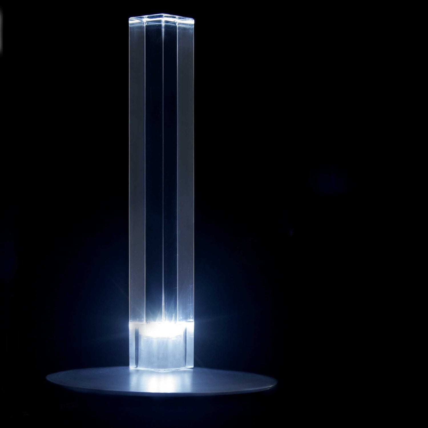 A simple, structured lighting design ready to make incredible impact in your contemporary home, the and LED Table Lamp from Oluce offers statuesque form and brilliant brightness for all your illumination needs. Showcasing a candle-like structure crafted from aluminum and transparent acrylic, this table lamp is rechargeable and can be moved about your space to wherever light may be needed. Instantly iconic, this portable lamp is ready to light up your bedside table, at-home workspace, or bring light to well-covered al fresco dining areas in need of some ambiance.