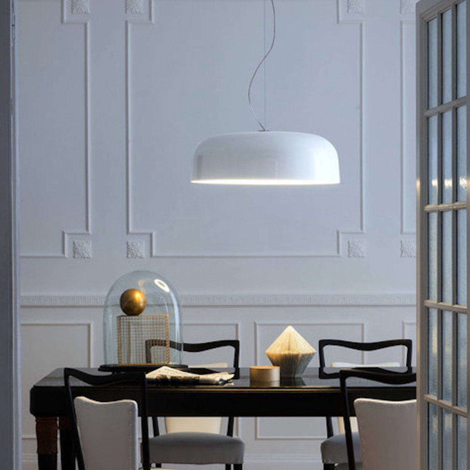 With its ample size owing to its name, the Canopy Pendant Light from Oluce offers expansive and shapely form to effortlessly accentuate your favorite interior spaces. Crafted from lacquered metal with a lacquered white interior finish, this pendant is ready to diffuse a soft, sinuous light into the surrounding environment. Perfect for above a dining room table to ensure a well-lit morning or evening routine, this pendant can be paired in multiples and installed along your kitchen island countertop for a perfectly accented and striking interior design.