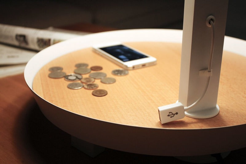 Carry marries utility with design. Not only is the Carry chic enough to spruce up any space it also serves as a great light source, it is strategically designed with a plate to hold daily essentials such as keys and coins. The Carry helps you achieve meticulous order in a fast paced society, a must-have for any modern lifestyle. The Carry is available in two versions: Floor and Desk. The Desk Lamp comes equipped with a USB adapter, specially designed for our technology enriched way of life.