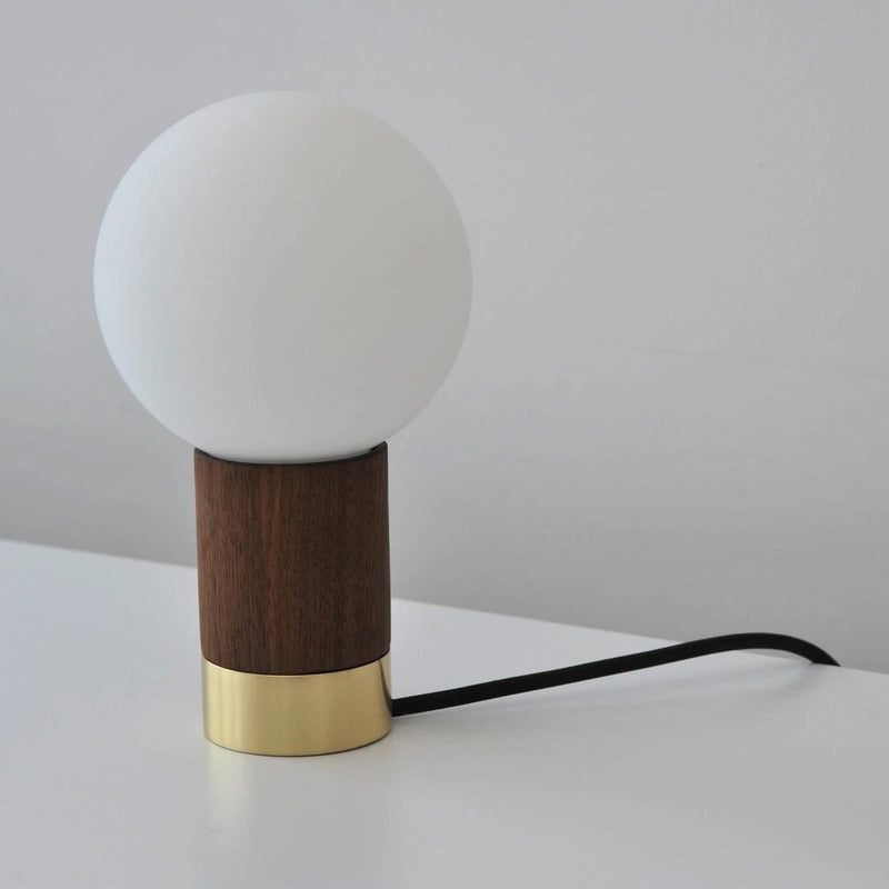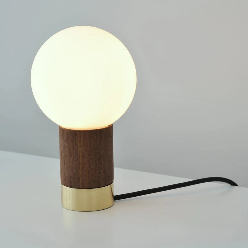 After the long winter, the quickly multiplying catkin is nature's story of vitality and exuberance. This playful table lamp is anchored by a solid wood stem and metal base and blooms on any surface. Handmade in North America. Solid Walnut or Oak, brushed metal, LED.