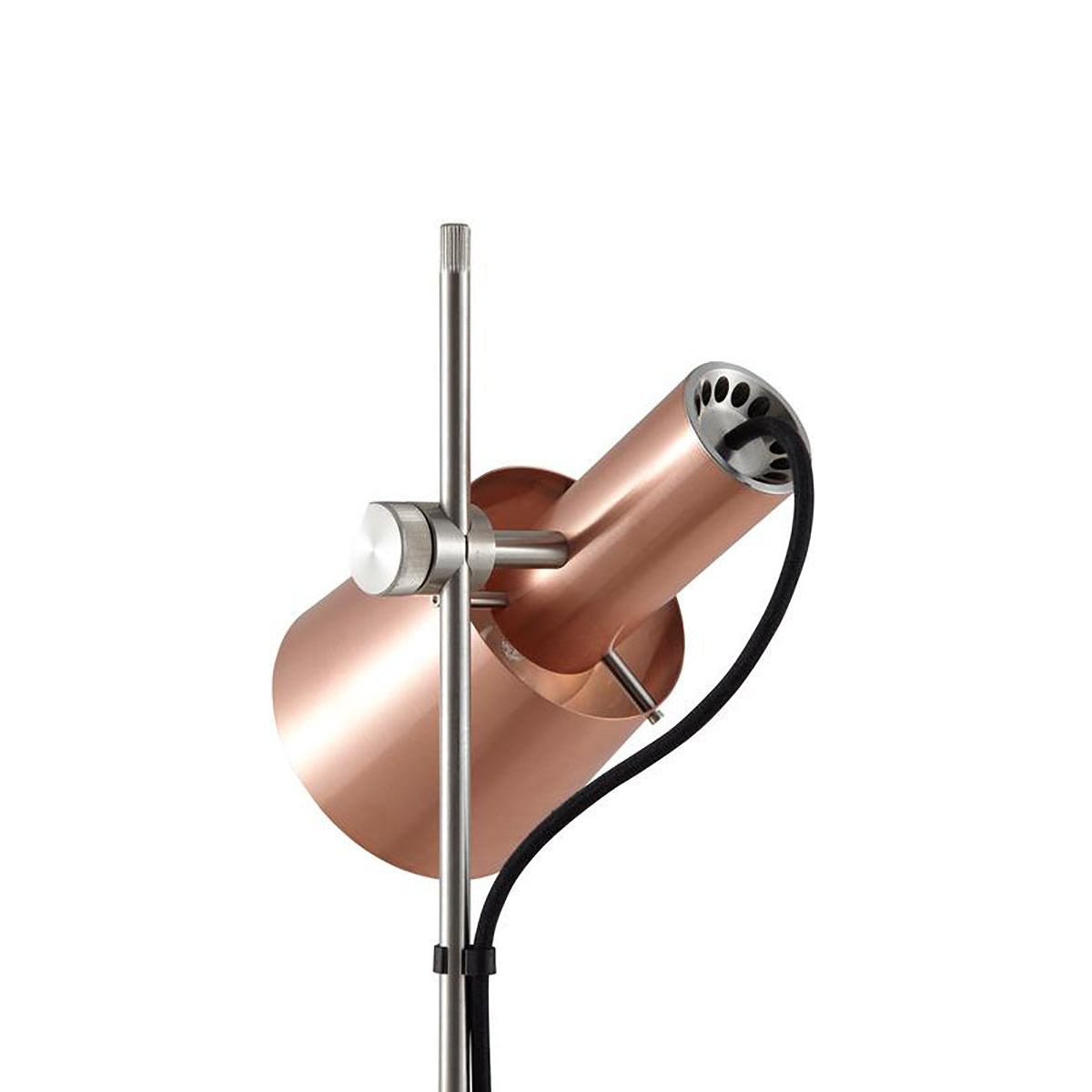 A contemporary and clean lined table light, perfectly suited for illuminating desk and table tops. The Chester has a striking satin brass shade with stainless steel metal work and base. A black cotton braided cable with an inline switch provides a contemporary and practical detail.