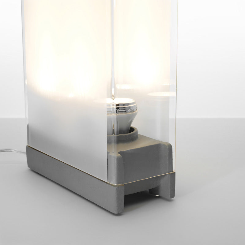 In conceiving of Cortina, designer Pablo Pardo sought to create a light that would assert its presence but seamlessly complement a variety of surroundings. What he built is a stoic, sculptural luminaire that emits a seductive light through its transparent and diffused surfaces. Cortina's monolithic form factor creates a noble light that mimics its architectural surroundings. The piece is comprised of a clear acrylic shade and a translucent fabric diffuser to shield the upward-facing light source.