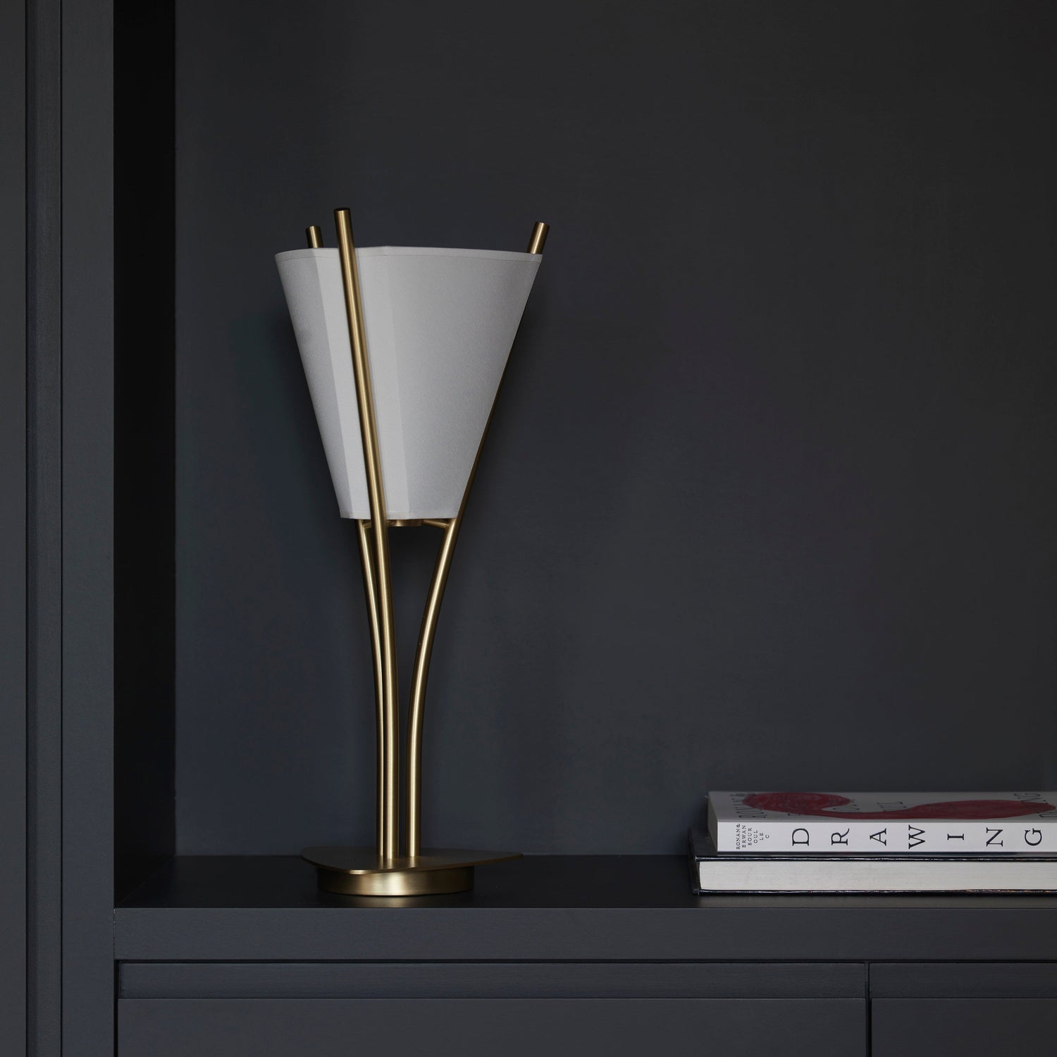 The lights of this collection are each composed of three formats with unique lines. Both the Curve floor lamps and Lamp arrange themselves around a triangular curved lampshade.