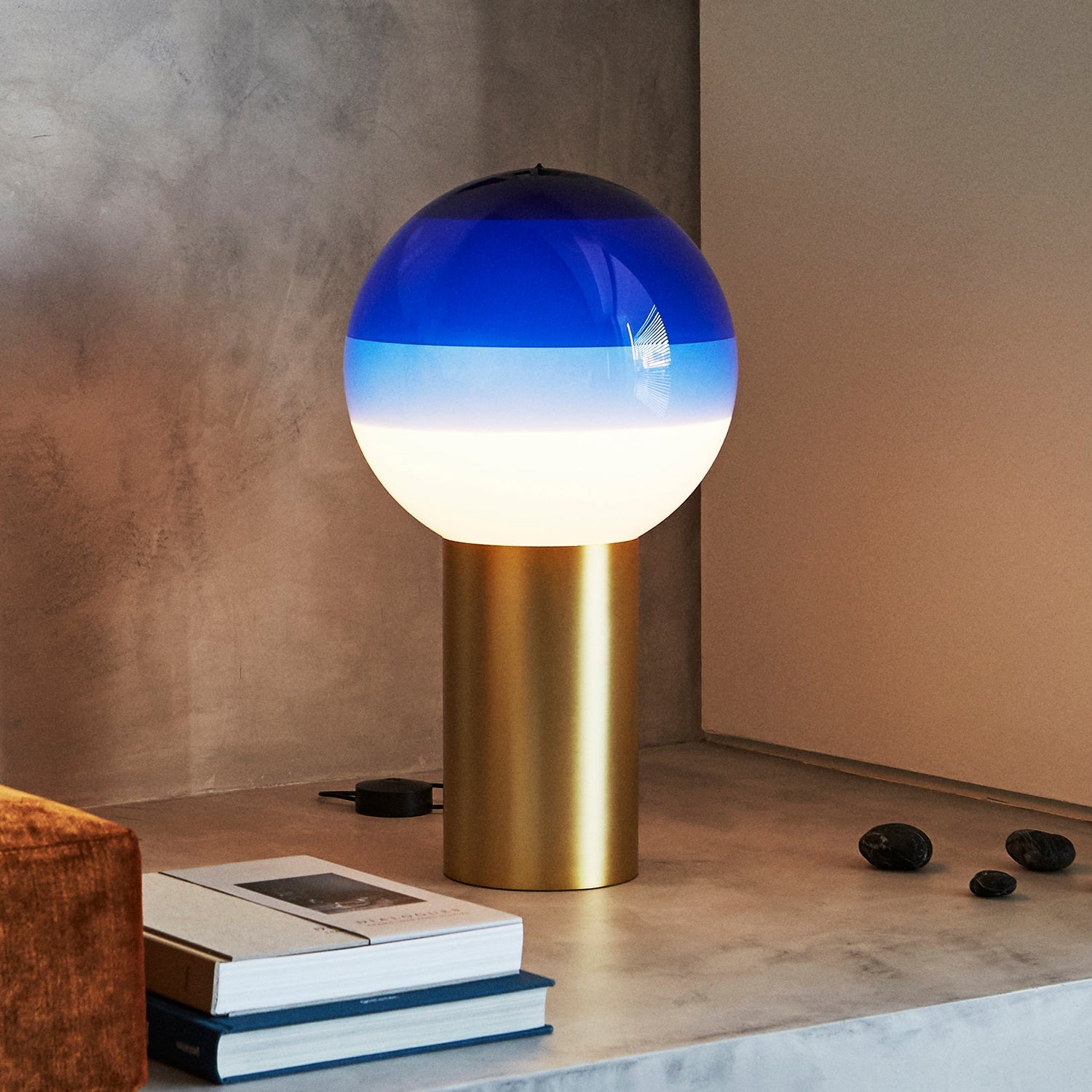 Beyond its function as a lamp, the Dipping Light seeks to excite. When it's turned on, its different shades of paint sift the light, creating a magical ambient effect. When it's off, its colored glass sphere is an object charged with beauty, and eye-catching design piece for a shelf, bedside, or table.