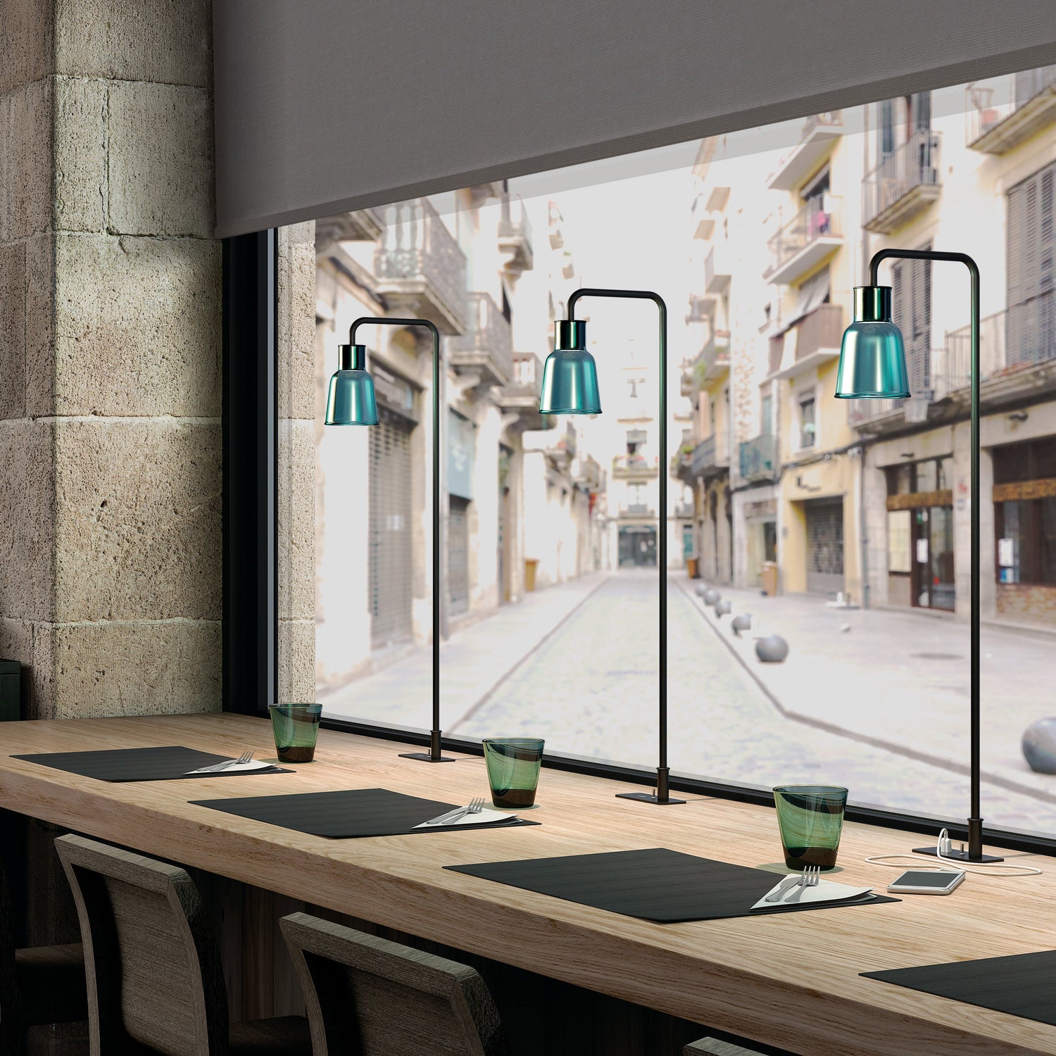 The Drip takes the diversification of the Drop to the next level. The Drip has the Drop's structure but has a personality all of its own. It is a lighting system that not only evolves into various product types (wall lights, table lamps, floor lamps with USB connection, among others), but also into other lampshade concepts. The new shade of the Drip gives one the impression of being in the presence of a completely different lamp from the Drop. It embodies the Drip's spirit; simple, minimalist and with straight lines. The Drip's small lampshade is made from borosilicate glass or polycarbonate, giving it a fine, delicate aesthetic. The choice of glass is closely linked to the light it casts, which is bright, but intimate. It creates ambiance while being highly practical for anyone nearby. I always keep in mind the space a lamp will be placed in because that is where it has meaning explains Christophe. The design and function of the Drip and Drop fit perfectly into residential projects and contracting work. Because it can be applied in many ways, it works very well in hotels, both in common spaces and in rooms. The new polycarbonate shade is designed to be used in commercial applications. Hotels, restaurants or public areas where friction or the possibility of breakage is a relevant risk.