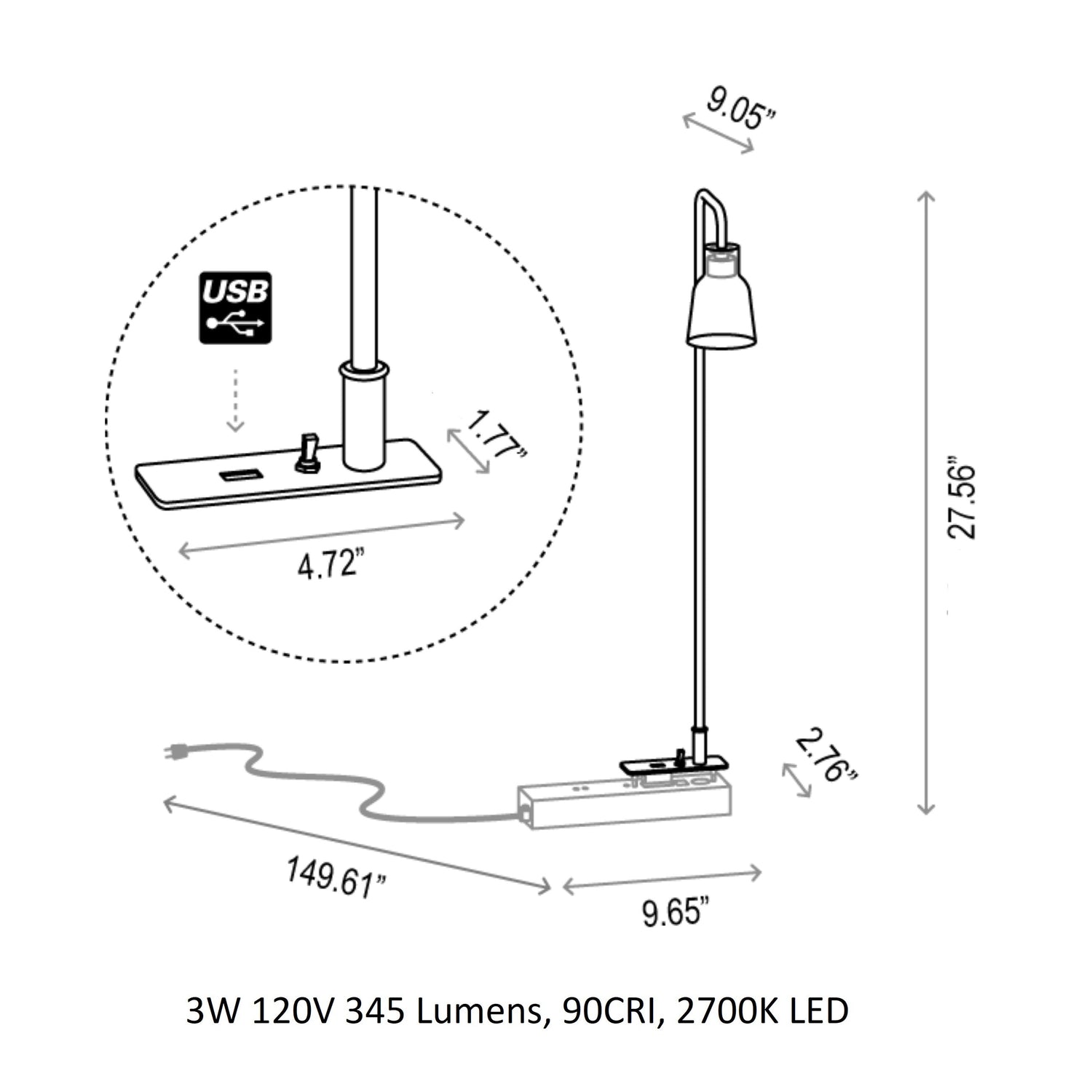- Switch and USB port located on the base