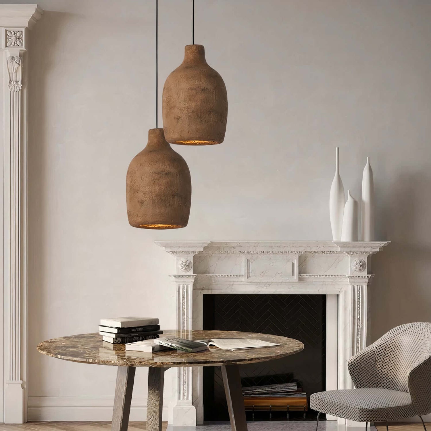Invite depth and dimension into your living space with the Effie light. This unique pendant takes an earthy shade of brown with a naturally nuanced cocoon silhouette and gives it a modern edge with a golden glow emerging from within. This inviting piece is both bold and unique, ideal for an understated statement look.