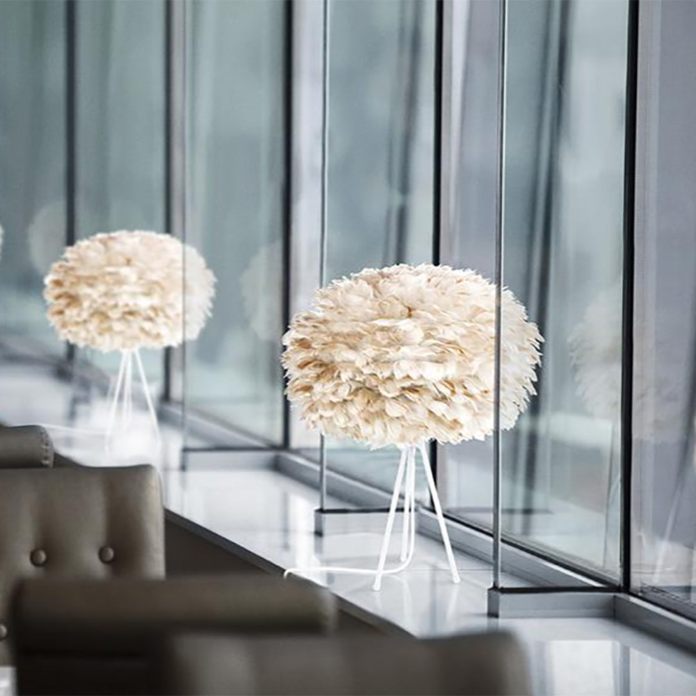 The Eos is made from all natural goose feathers, making all the Eos shades natural and one of a kind. Eos gives a soft light and it has a beautiful mesmerizing elegance, even when not illuminated. The feathers are procured responsibly, sanitized and sewn to the shade by hand.