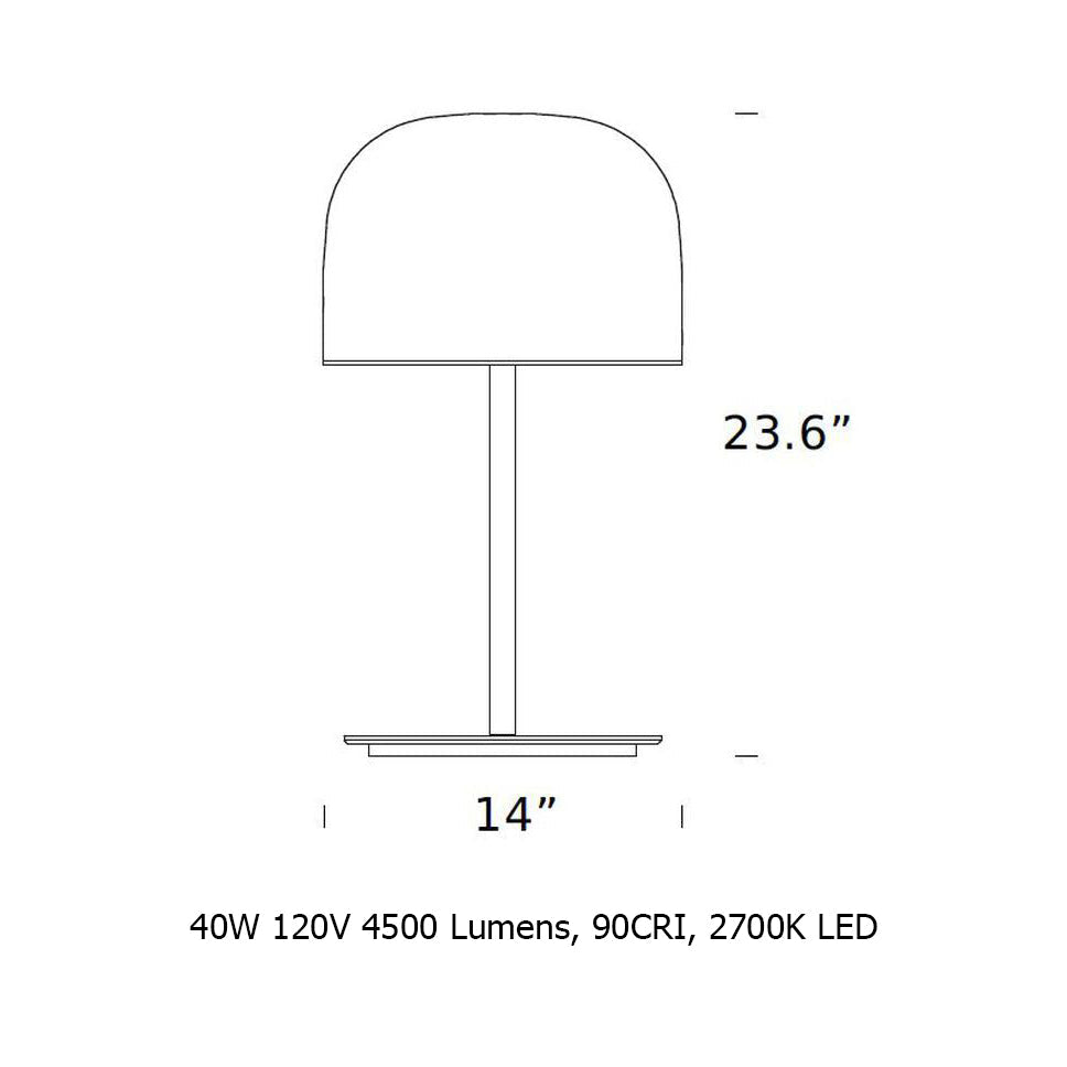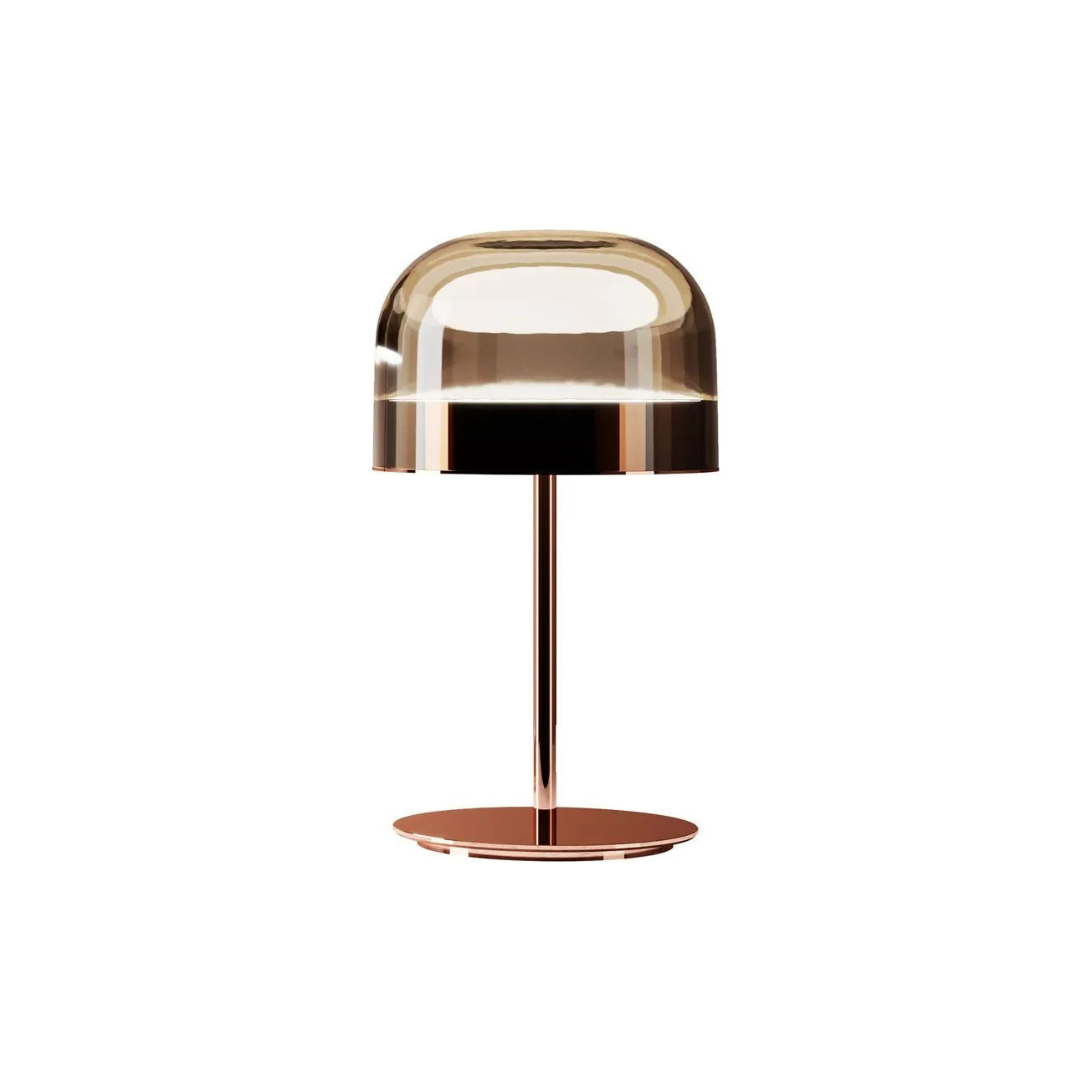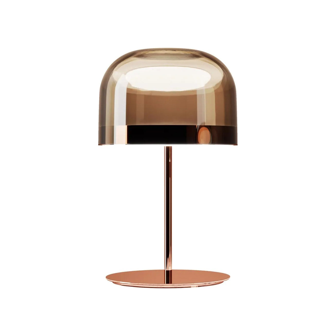 Equatore is a contemporary reinterpretation of the classic lamp with a glass shade. While the traditional abat-jour uses the shade to contain the light source within, in this family of lamps the shade is paradoxically and suggestively empty, with the light being generated by two luminous discs placed inside a central metal band, visible on the shade, that evokes the line of the equator. The light produced by the Leds, thanks to internal screens arranged in layers, is distributed regularly across the surface of the discs, magically illuminating them. The lower disk directs the light output downward, the upper one illuminates the glass cap for a soft, diffused light. Available in table, floor and ceiling models.