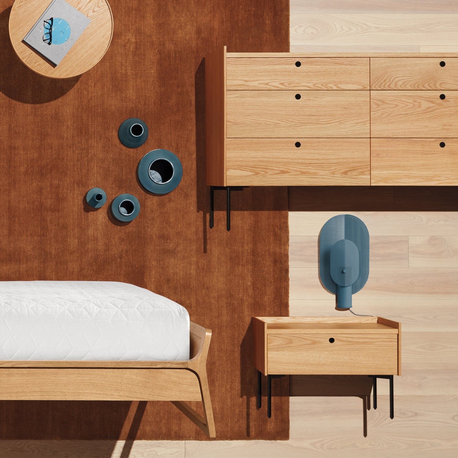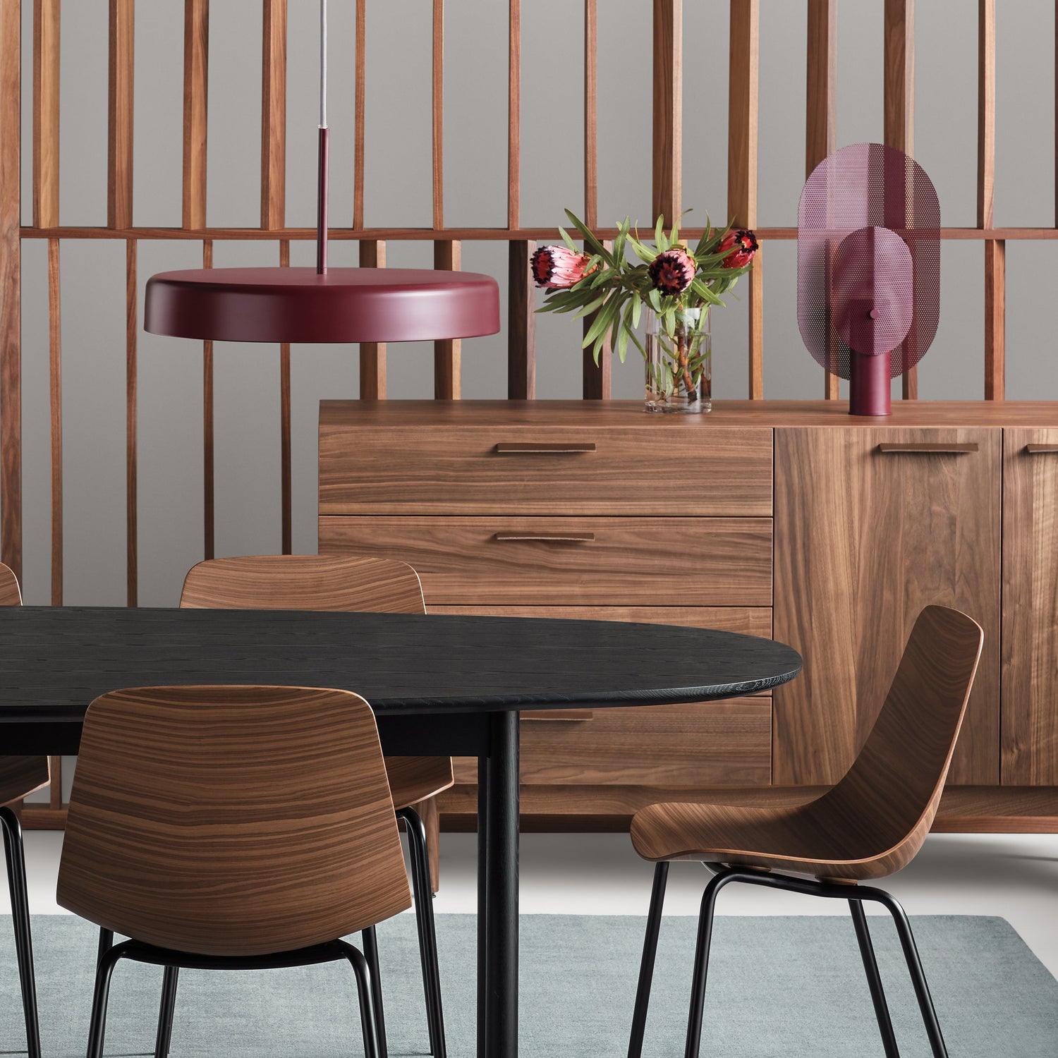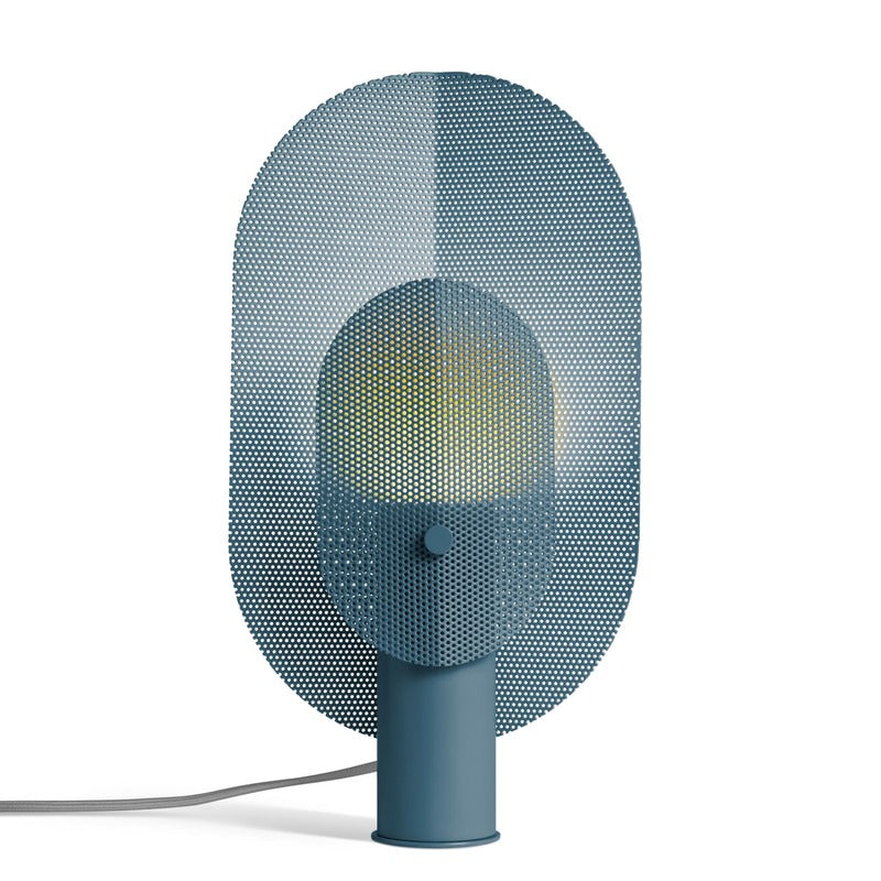A charming modern lighting design, the Blu Dot Filter Table Lamp features an inventive composition in which two parallel oval discs of perforated metal act as attractive filters for the integrated light source. The dimmable feature allows you to change the brightness to really set the mood depending on the room. The Filter is a striking table lamp that remains ideal for any space were ambient light is needed.