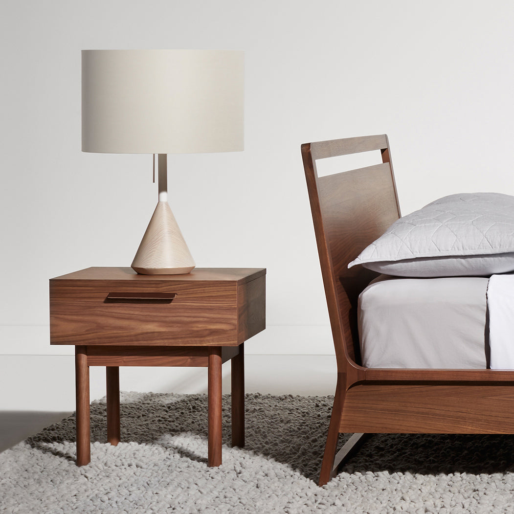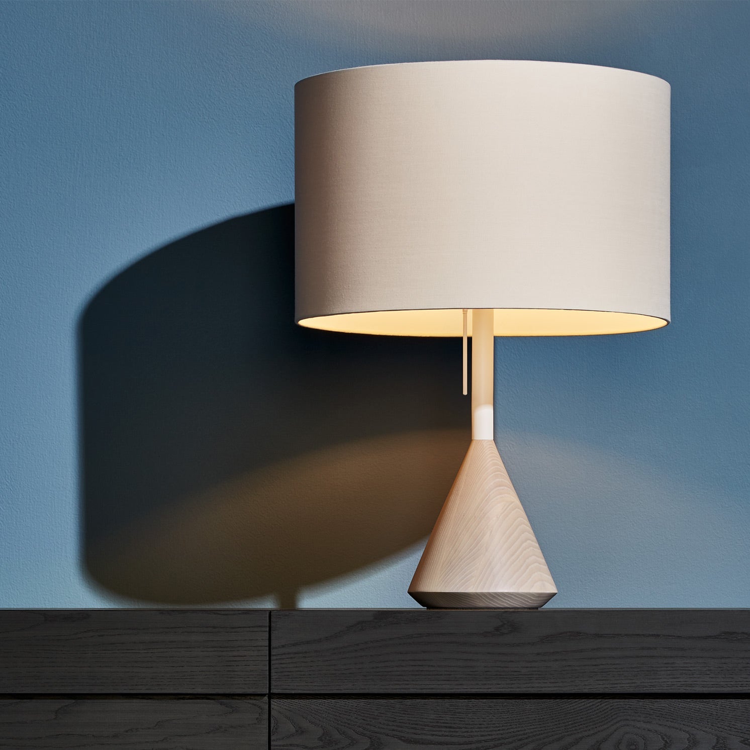 Enlighten any dark corner of your home with Flask, a modern table lamp from Blu Dot that makes an inspired lighting addition to any interior space. Flask has a solid ash wood base and linen shade in identical color, forming an elegant monochromatic silhouette. Details in white powder coated steel or brass are perfect finishing touches.