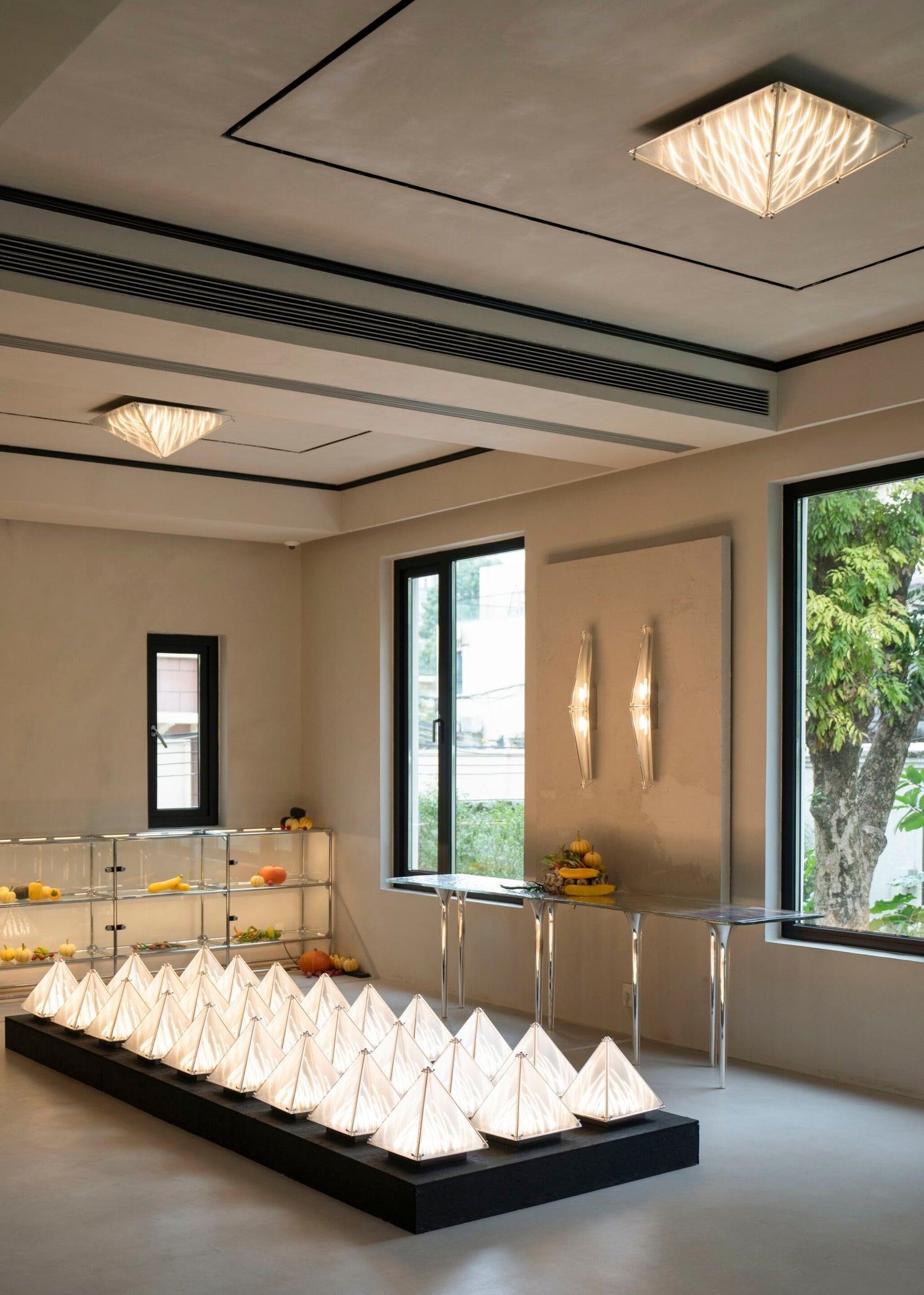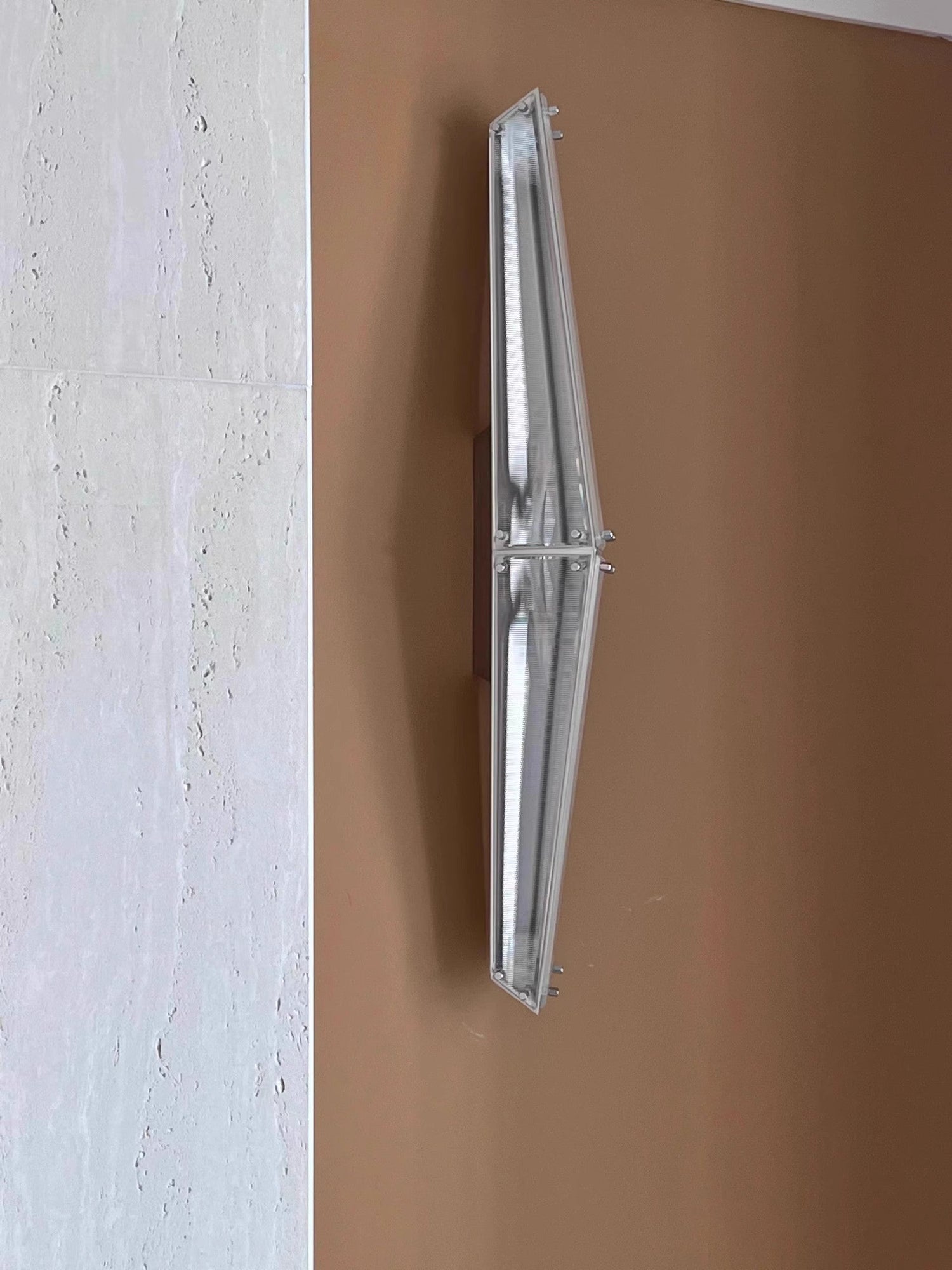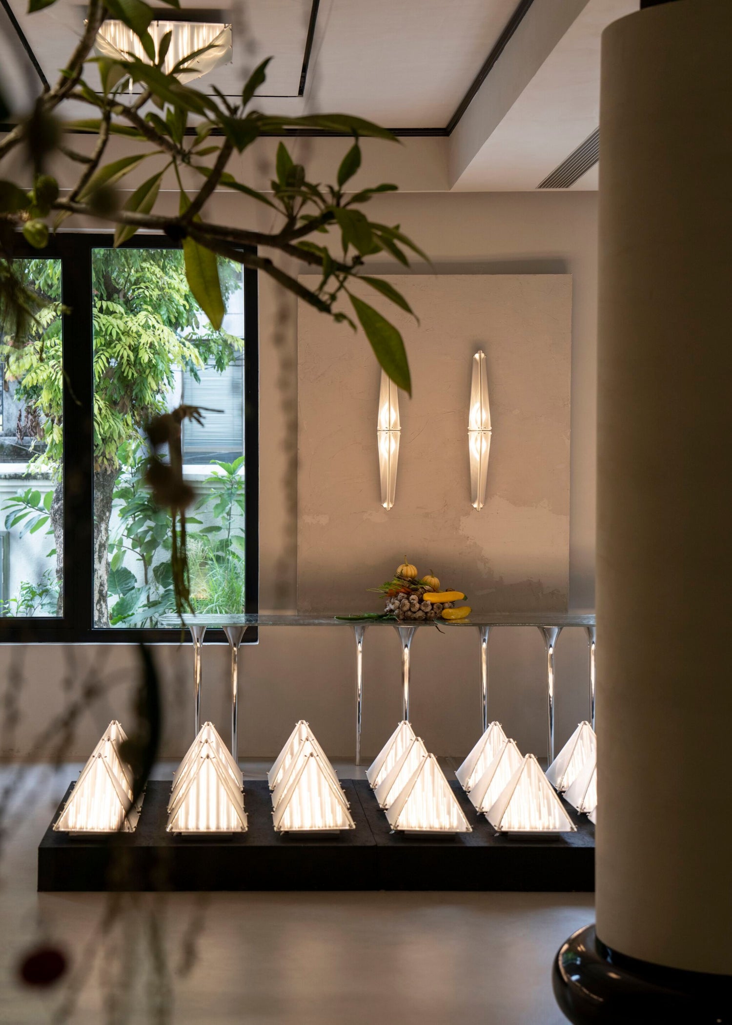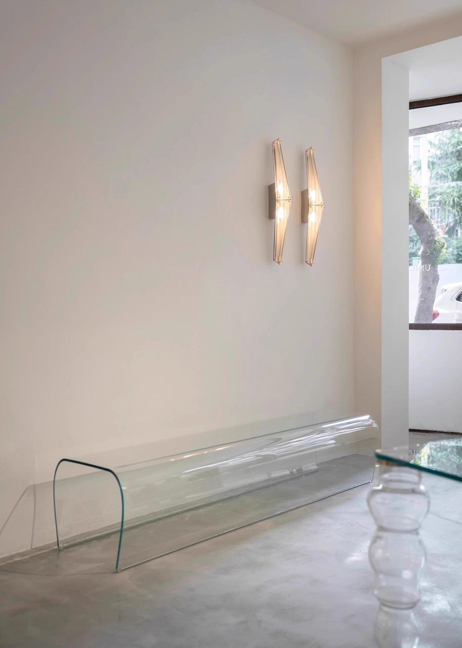 'Fragment' 09 Wall lamp used Patterned glass that can distort the direction of light, and create a special effect, inspired by archetype of a western gothic church and the mysterious atmosphere created by the colorful windows in the church, transforming architectural language into his lighting series 'fragment'.