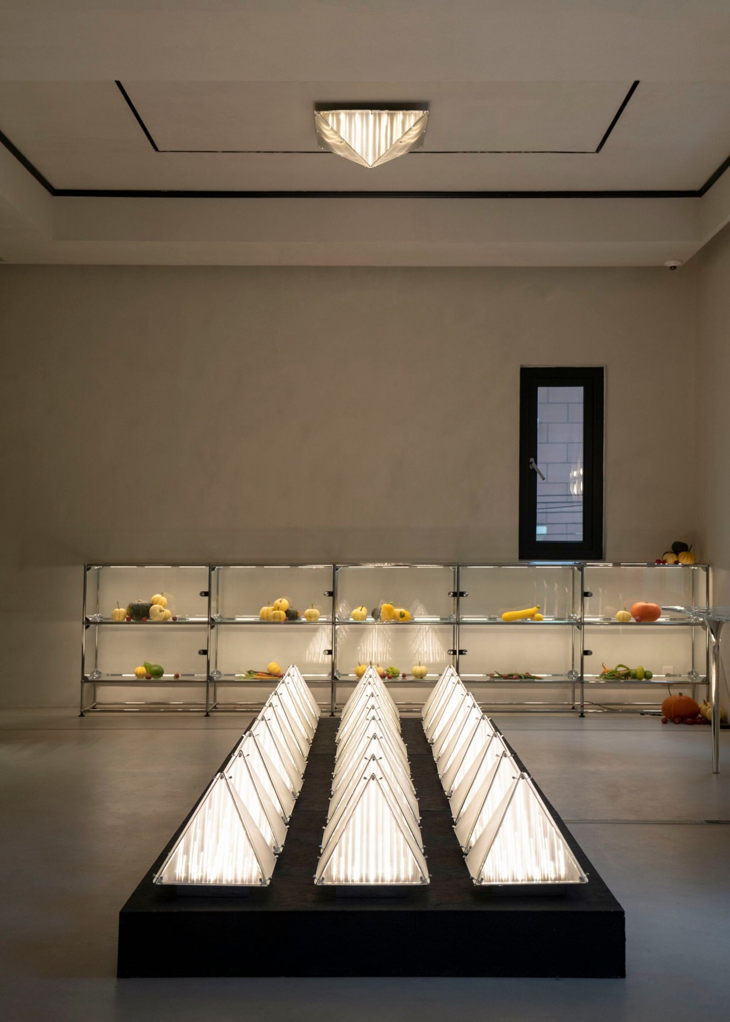 'Fragment' Table lamp used Patterned glass that can distort the direction of light, and create a special effect, inspired by archetype of a western gothic church and the mysterious atmosphere created by the colorful windows in the church, transforming architectural language into his lighting series 'fragment'.