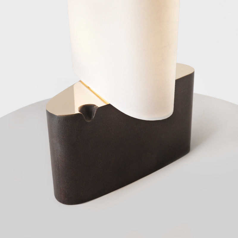 The Fulcrum Lamp is the modern re-expression of an archetype. Its free formed silhouette and re-position able shade allow it to take on new forms from every angle, rendering it equally at home on an antique side table or plywood bench.