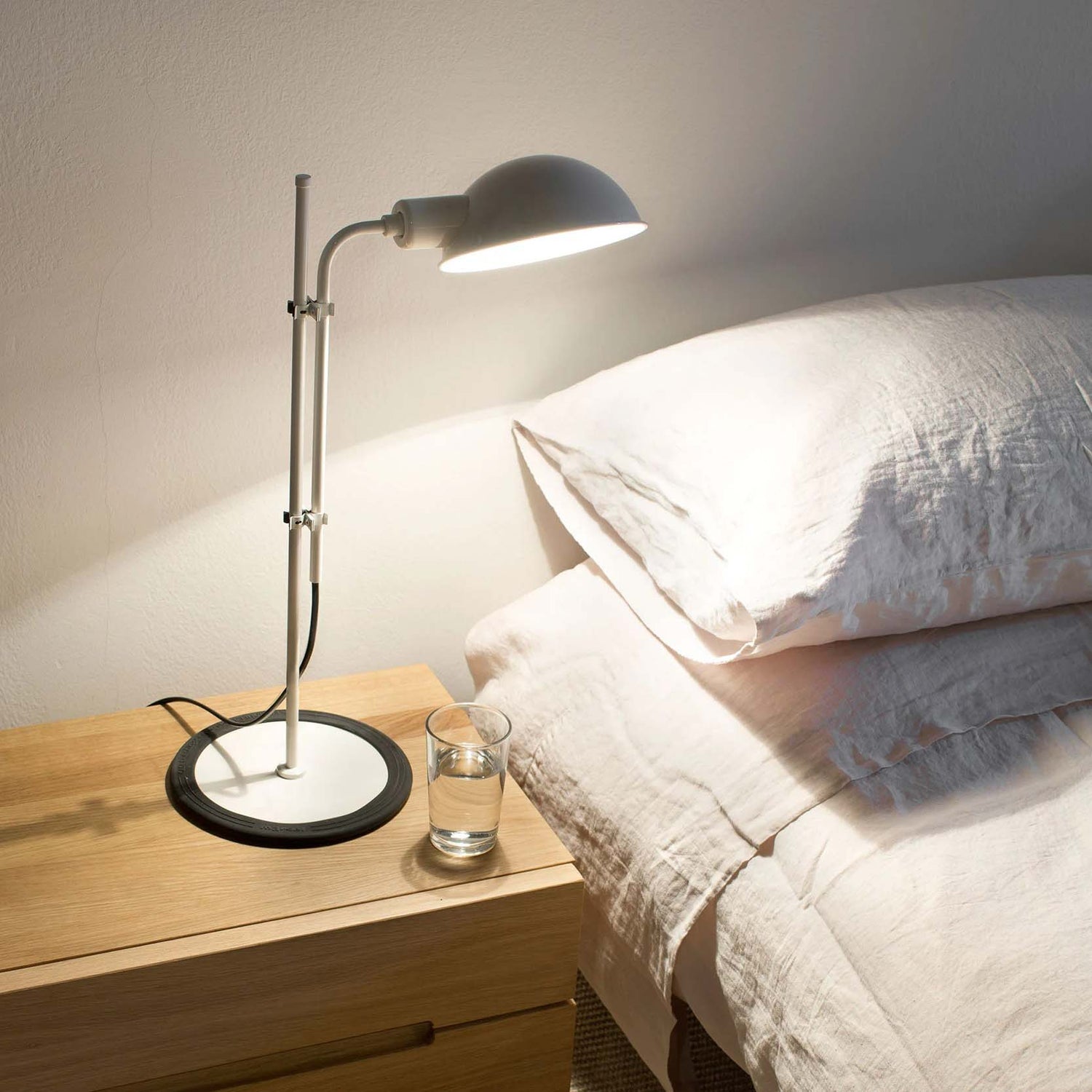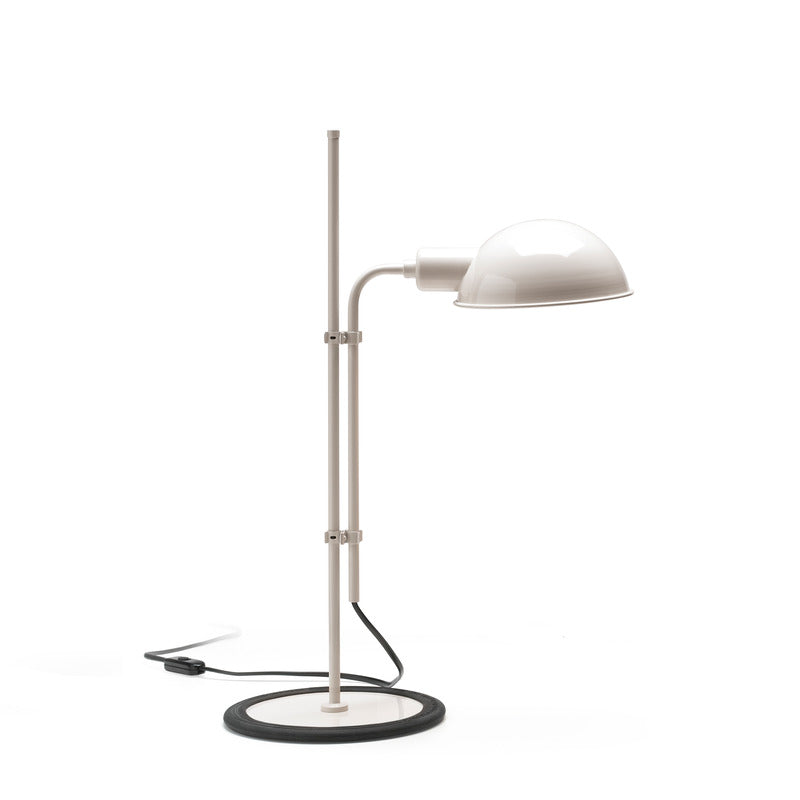 While the standard Funicul¨ª was updated last year, the collection has also been extended to incorporate a table version, which retains the purity of the fixture's style and its original attributes. Using the same double-clip mechanism of the original, this scaled-down model allows easy height adjustment and 360 shade rotation to fit the needs of any room or user. The base of Funicul¨ª is covered in rubber on the bottom to avoid the cold contact between the metal and the floor while adding stability to the lamp.