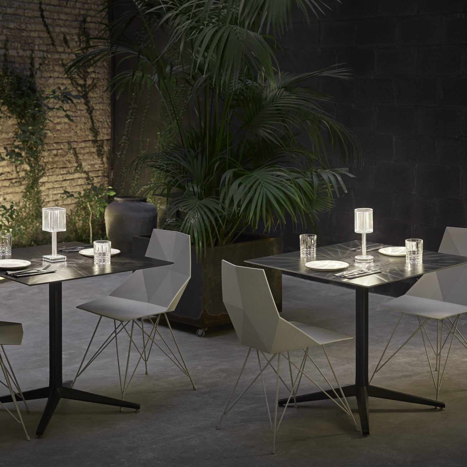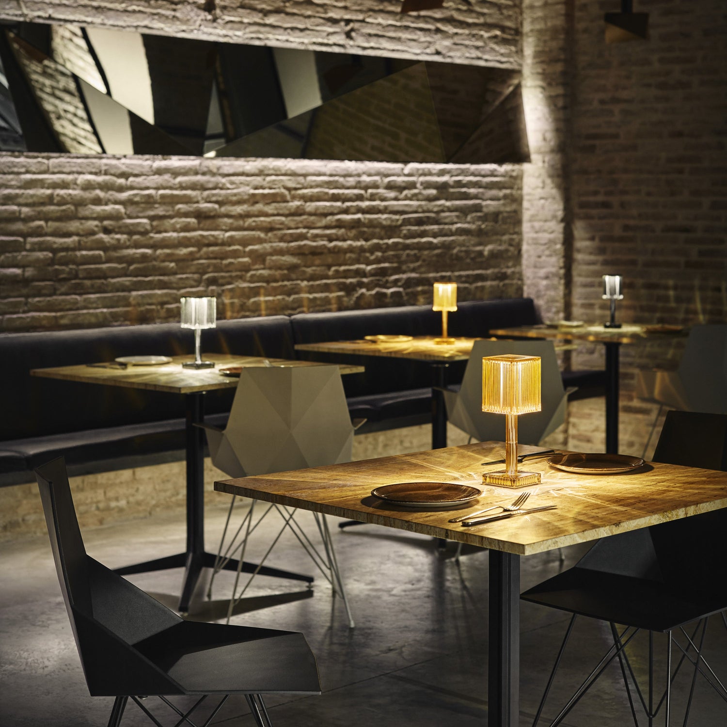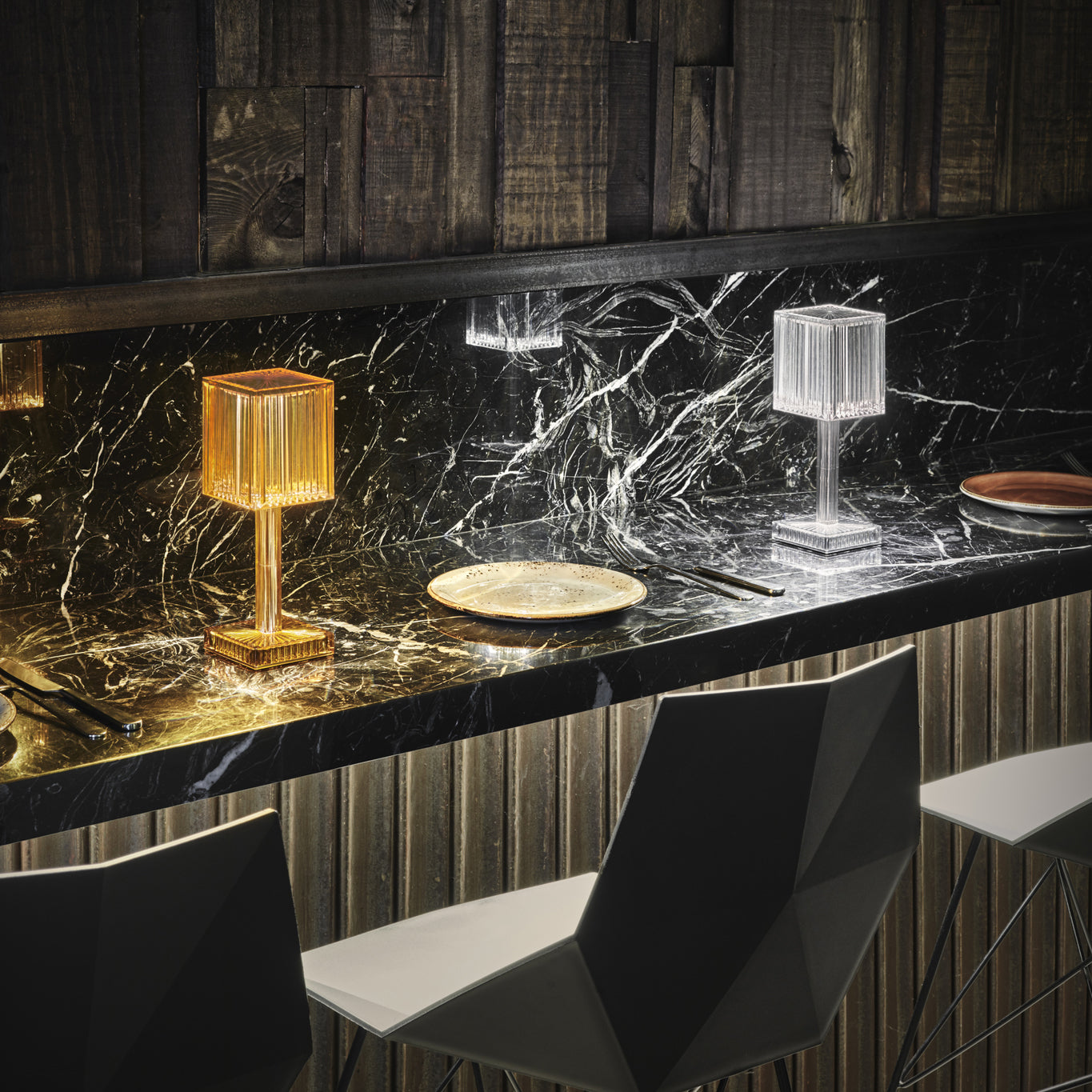 The GATSBY collection, designed by Ram¨®n Esteve for VONDOM, recalls the Art D¨¦co lighting. This lamp is based on the idea of creating a surrounding atmosphere through a suggesting play of lights by means of the lamp's surfaces, where the material reproduces the shapes and sensations of engraved glass.