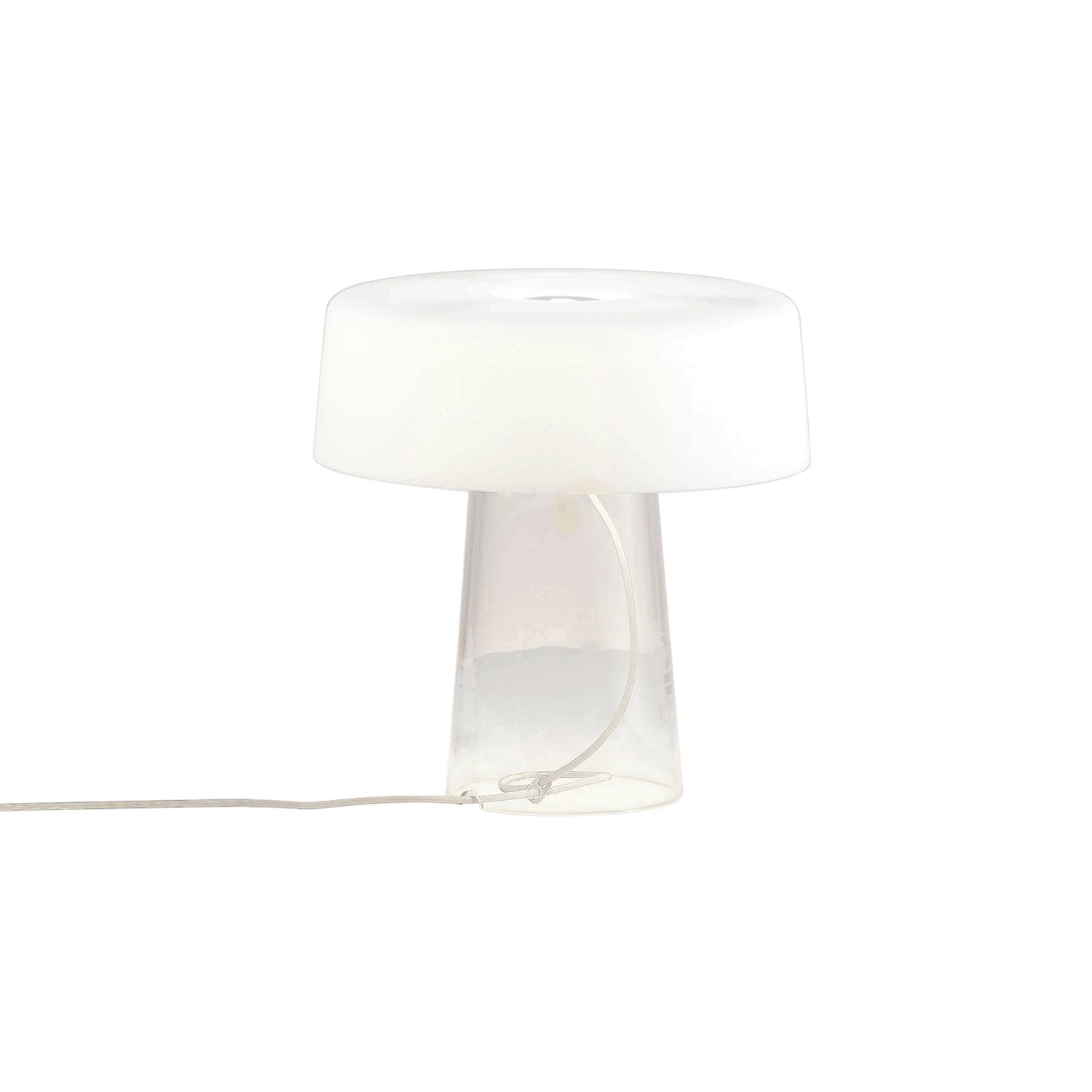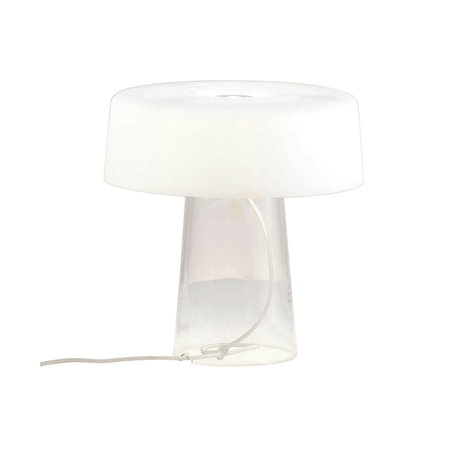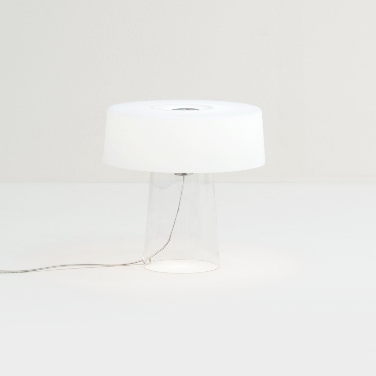 A reinterpretation of the stereotypical table lamp, the Glam Small Table Lamp designed by Luc Ramael for Prandina, is short on stature, but big on style. Consisting of two blown glass pieces balancing as one, this lamp features a clear base and white interior power cord that adds to the character of the lamp. Flank either side of a vanity for additional lighting while putting on makeup or place on side tables throughout your home for a convenient reading lamp.