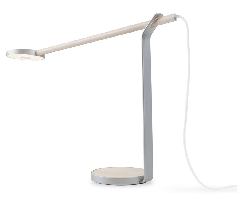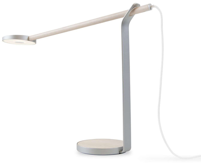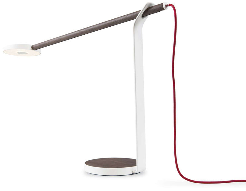 Gravy brings the latest LED technology and the warmth of wood to your home or office lighting. Edge lit technology provides a soft, evenly distributed glow of warm light. Simply tap the center of the underside of the light ring, and touch and hold to dim or brighten the light. The wood bar holding the illuminated LED head swivels 360 degrees, and also slides back and forth to provide the user with perfect lighting placement.