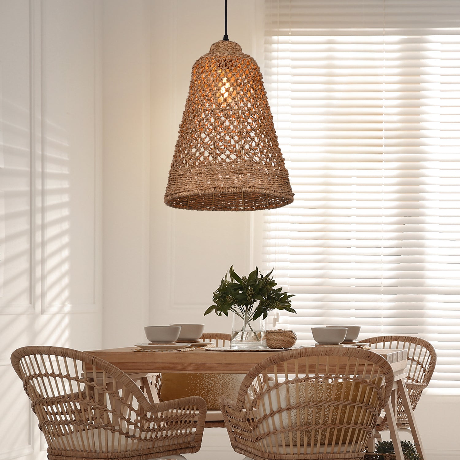 Enhance your dining room with our exquisite hand-woven dining room Straw rope pendant light. Crafted meticulously, it adds a touch of elegance and warmth to any space. Available in sizes of 30cm/11.8in*40cm/15.75in, 40cm/15.75in*50cm/19.69in, and 50cm/19.69in*60cm/23.62in, it provides ample lighting while creating a cozy atmosphere. Choose between hardwired or plug-in options for easy installation. Elevate your dining experience with this beautiful and versatile pendant light.
