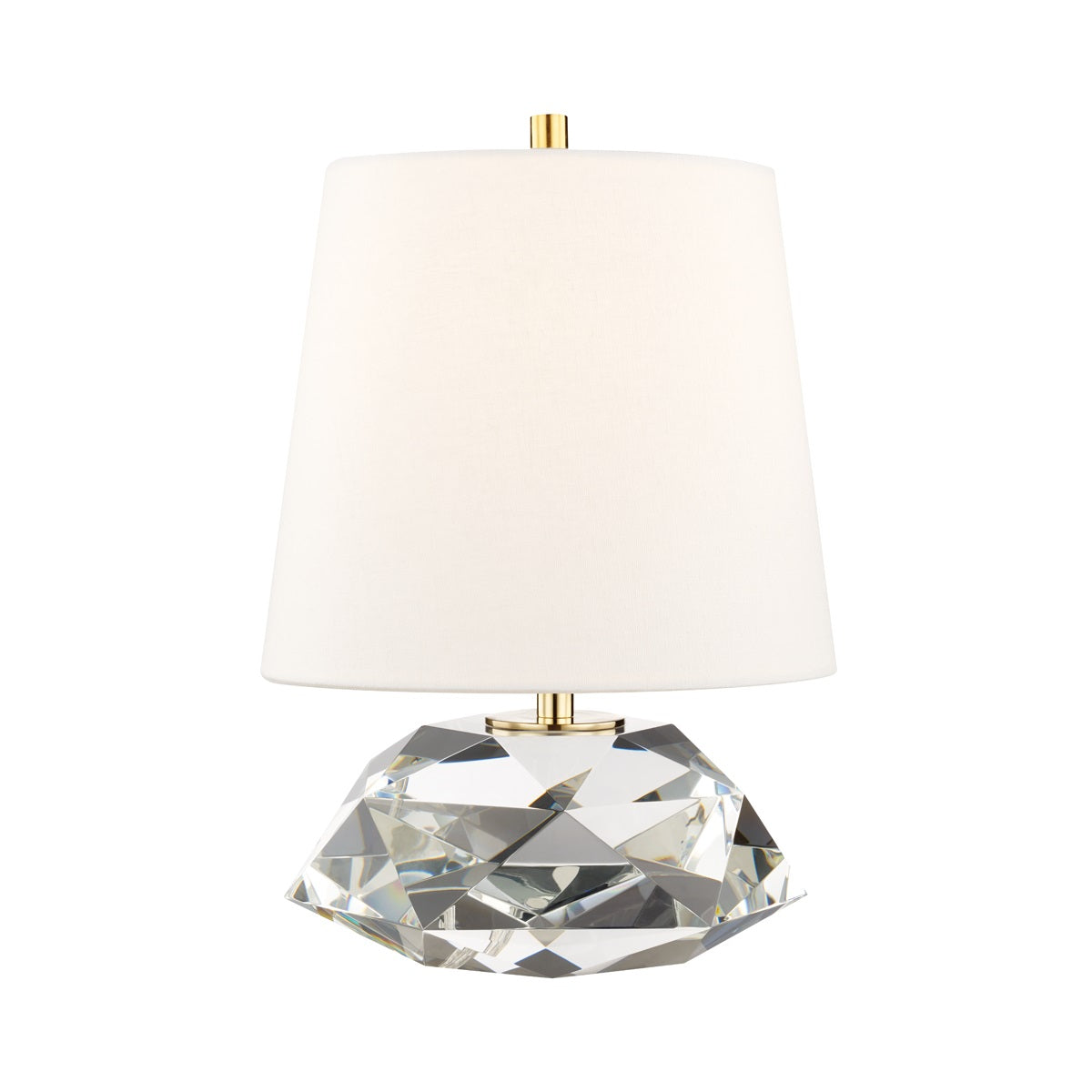 A table lamp sometimes adds a visual weight that helps anchor a space at the same time it illuminates it and provides a decorative accent. Henley's dense base of multifaceted crystal has that effect. A perfectly proportioned shade of Belgium linen completes this glamorous addition.