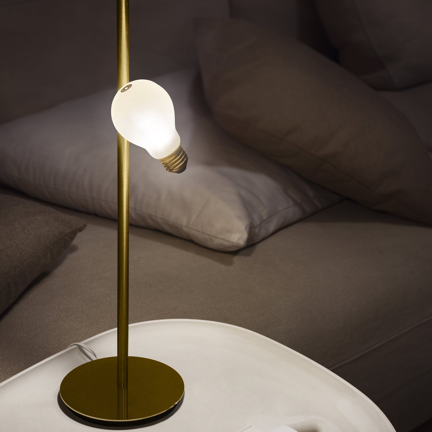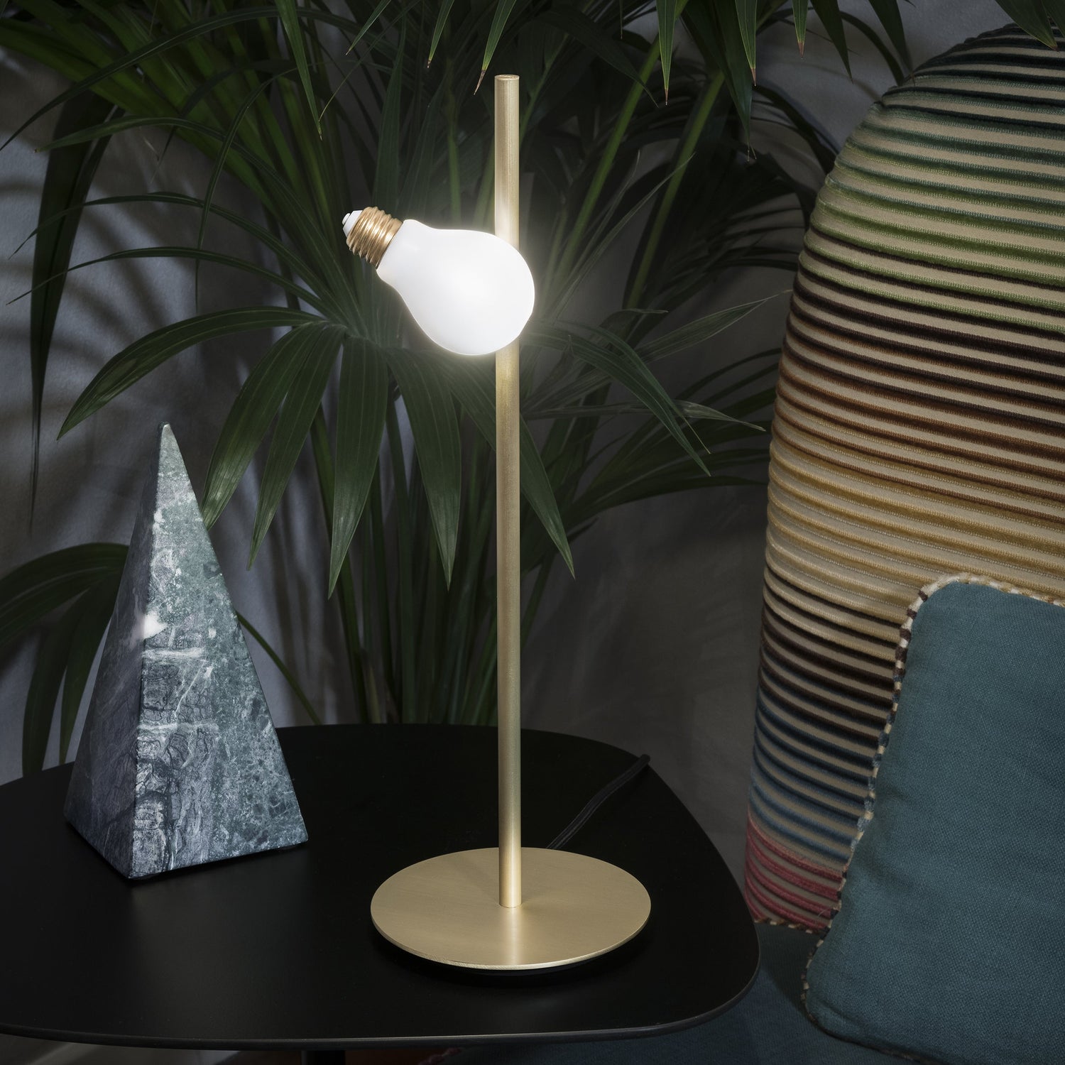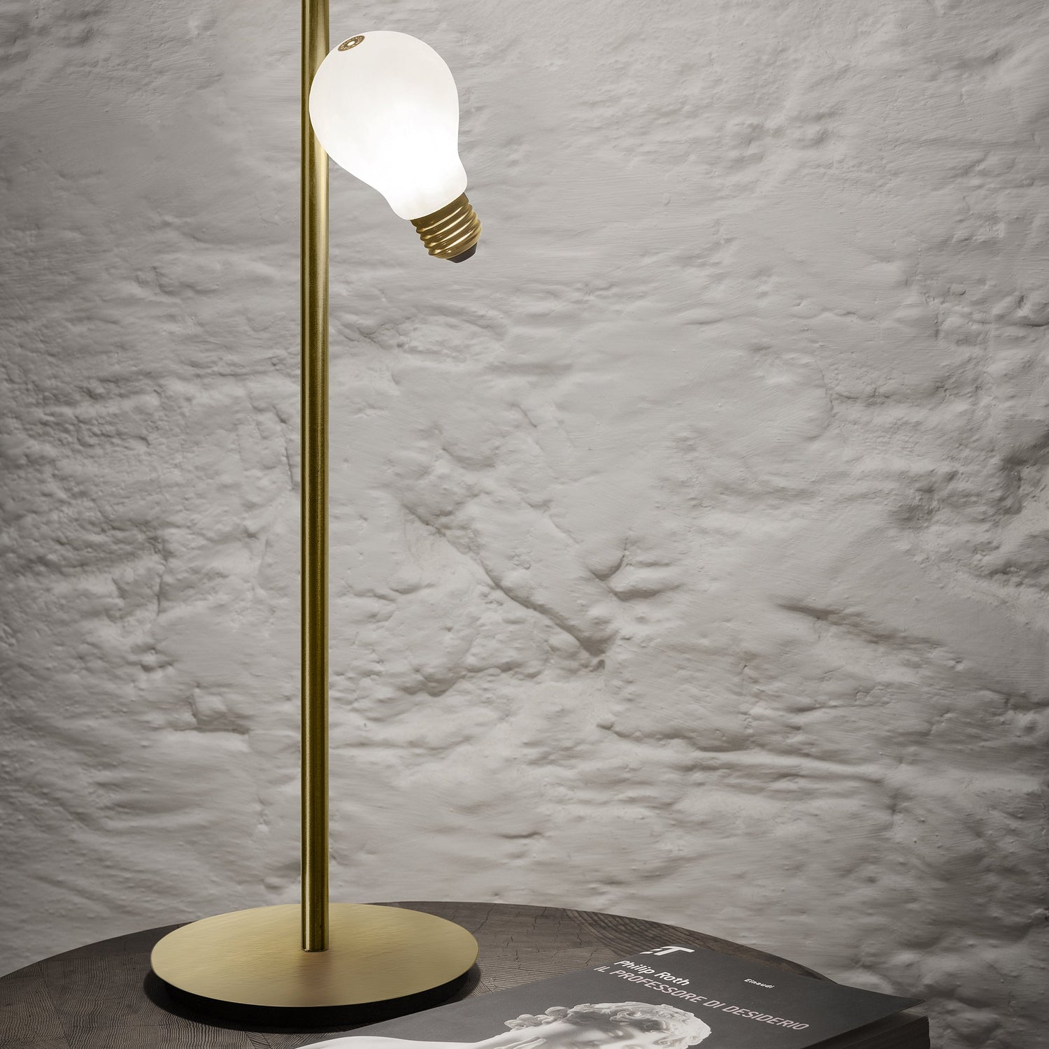 They say inspiration comes on like a lightbulb going off in your head. Idea strips away design, leaving the essence of light; a three-dimensional bulb and a brass-finish screw base, magically suspended on a wall-base that comes in a brushed brass, mirrored, or white mattee finish. Also available in a recessed wall lamp version that plays on the unexpected, ironic effect of an idea popping up when, and where, you least expect it.